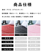 商品仕様: サイズ約130cm*約220cm、重さ約250g、厚さ0.07㎜です。シングルベッドに適用、防水のPVC材質採用します。おまけ:約80cm*約190cmの使い捨てホワイト防水シーツ1枚(不織布材質)。
