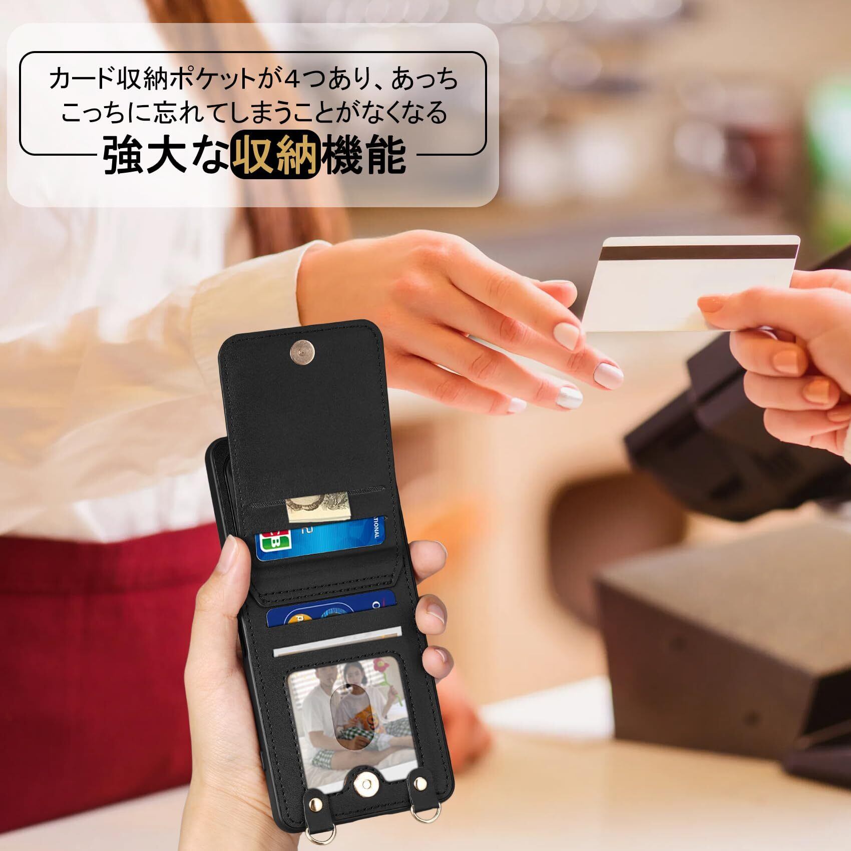 【安心感あり】ケースには下に二つのストラップホール、上に一つのリングが配備して、ショルダーストラップは調節可能なデザインが施され、お客様の一番快適な長さを自由に調節でき、ケースは落としづらく、紛失防止にも最適、スマホを片手操作できます。2箇所で吊るすので安定感もあり、使わない時にも安心で胸の前に置けばいいです。両手が自由になって、携帯を無くす心配もいらないです!ストラップが付けてなくても、指をリングに通すと多少の落下防止にも役が立ちます。カメラ部分もより高く設計で落としてもカメラレンズを保護できます、お客様にいっぱいの安心感を与えます。