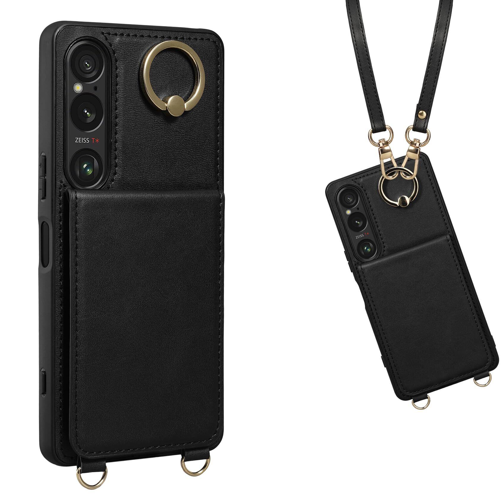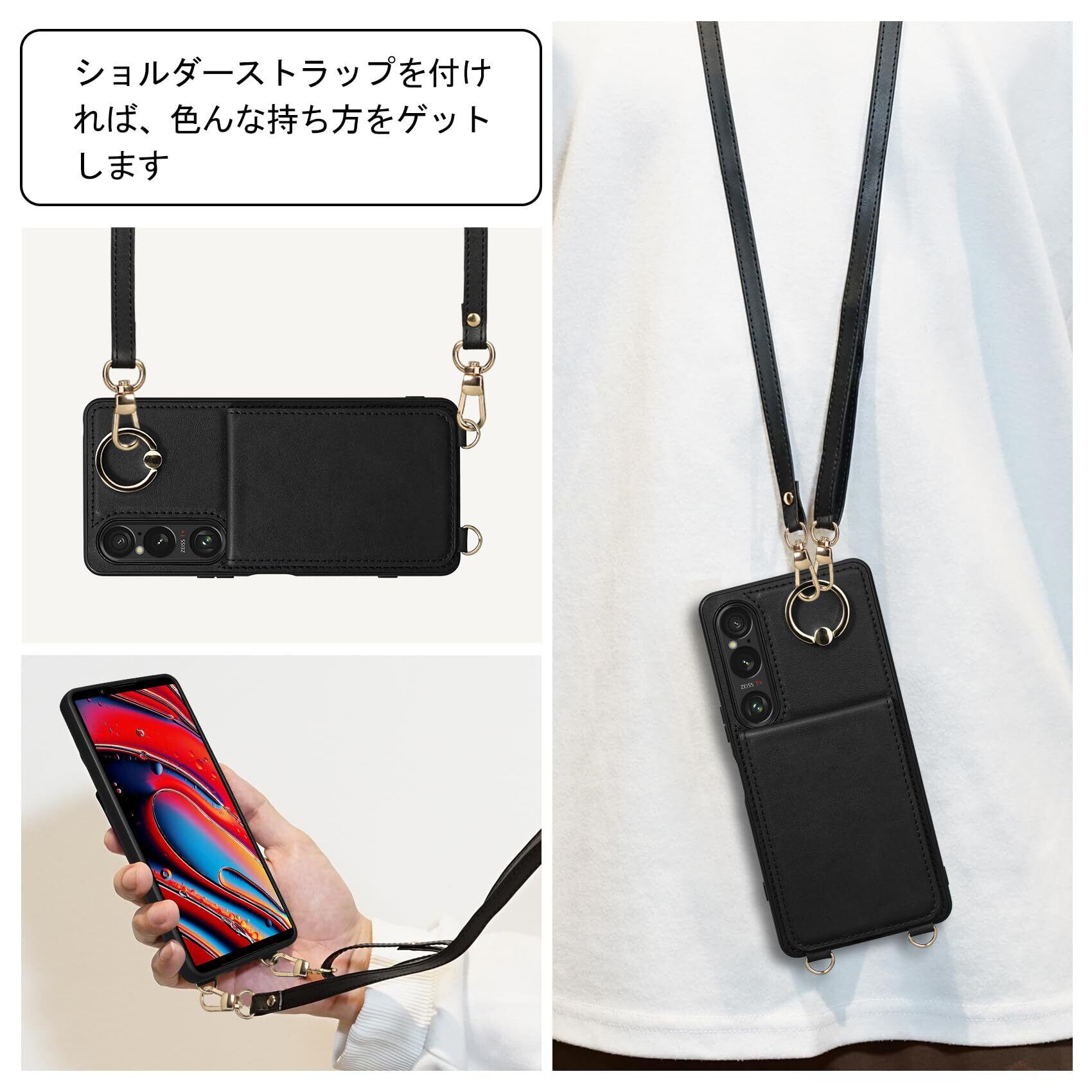 Shlybaay Xperia 1 VI ケース 手帳型 背面 カードケース Xperia1 VI 2024 手帳型ケース SOG13 用 ショルダー ストラップ 背面ケース SO-51E 用 PUレザー 肩掛け カード収納 斜め掛け スタンド マグネット エクスペリア 1 VI ケース 可愛い 人気 おしゃれ 財布型 首掛け 多機能 6.5inch ブラック