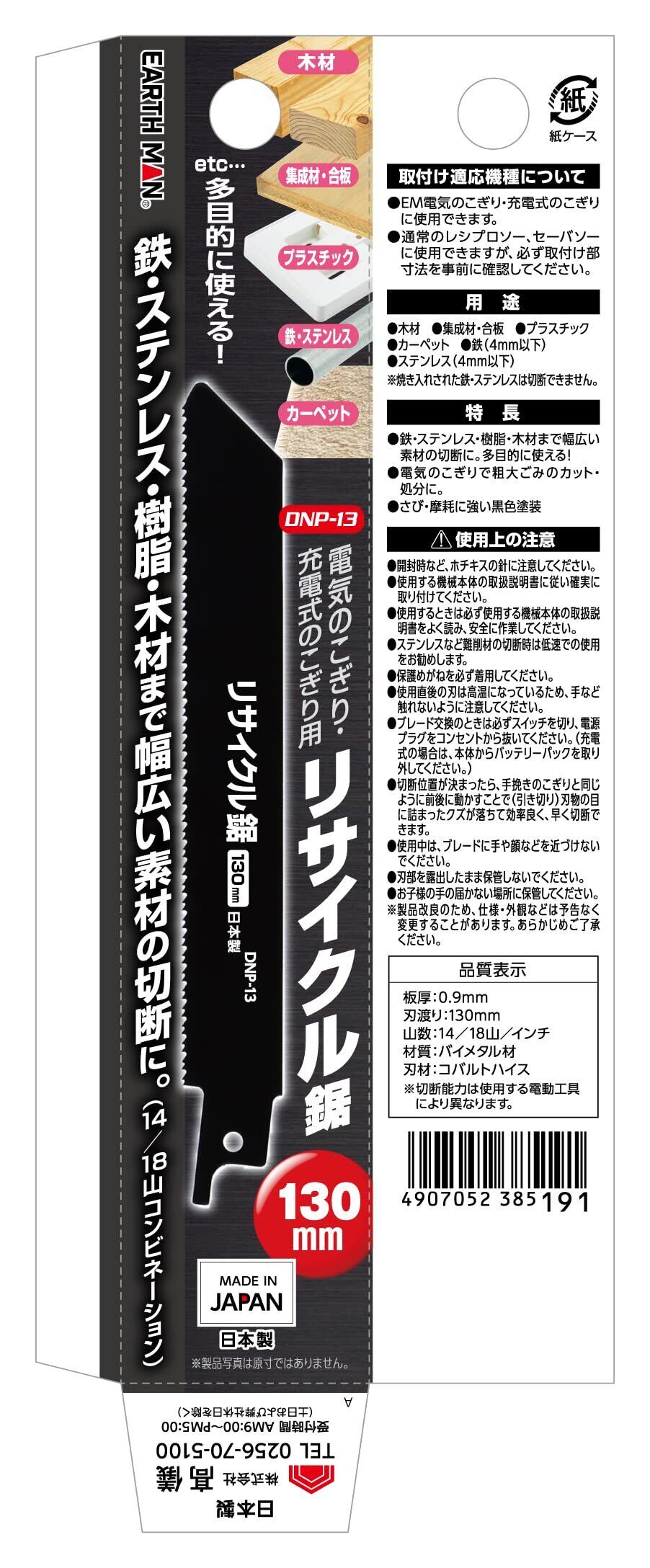 高儀(Takagi) EARTH MAN 電気のこぎり・充電式のこぎり用 リサイクル鋸 130mm DNP-13