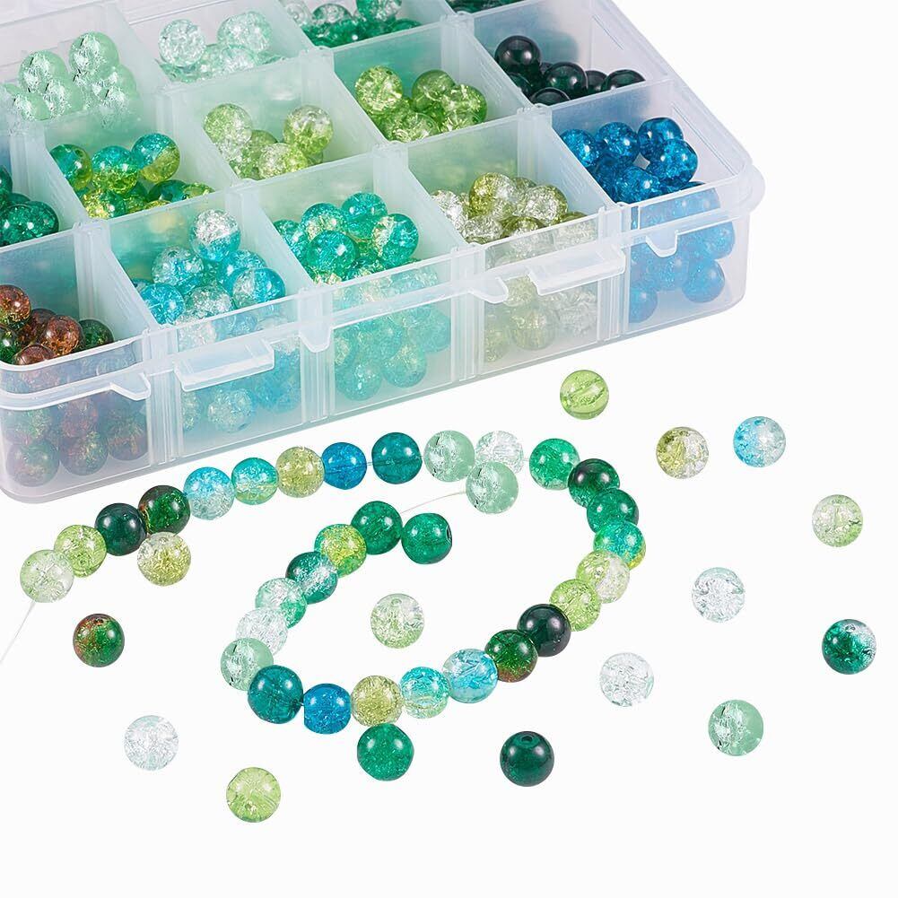 PandaHall 15色 8mm ガラスビーズ クラックビーズ 約460個 透明 緑のガラスビーズ アクセサリーパーツ