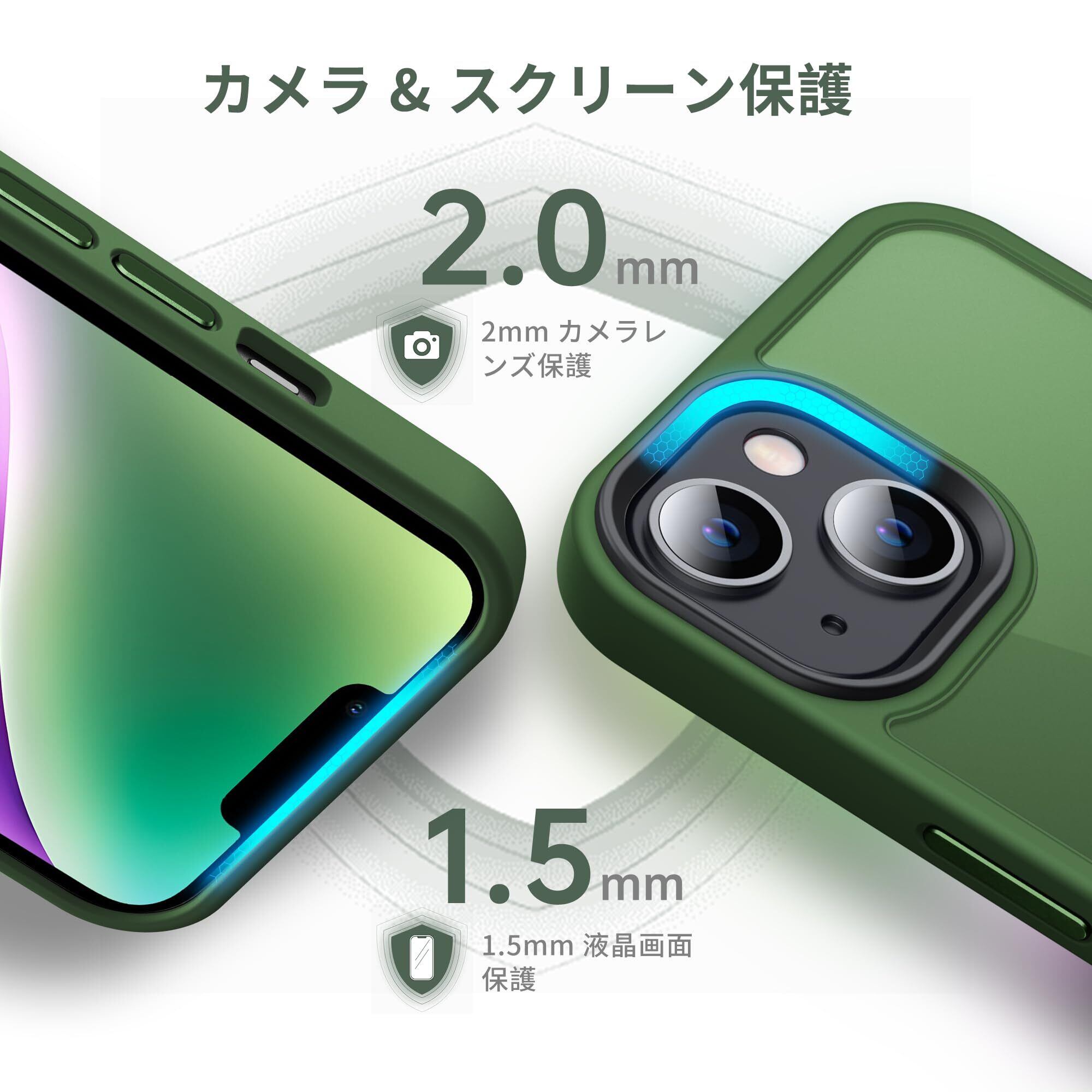 Anqrp iPhone 14 Plus 用 ケース 半透明 耐衝撃 滑り止め 米軍MIL規格 指紋防止 マットケース ストラップホール付き ワイヤレス充電対応 スマホケース アイフォン 14 Plus カバー 6.7インチ グリーン
