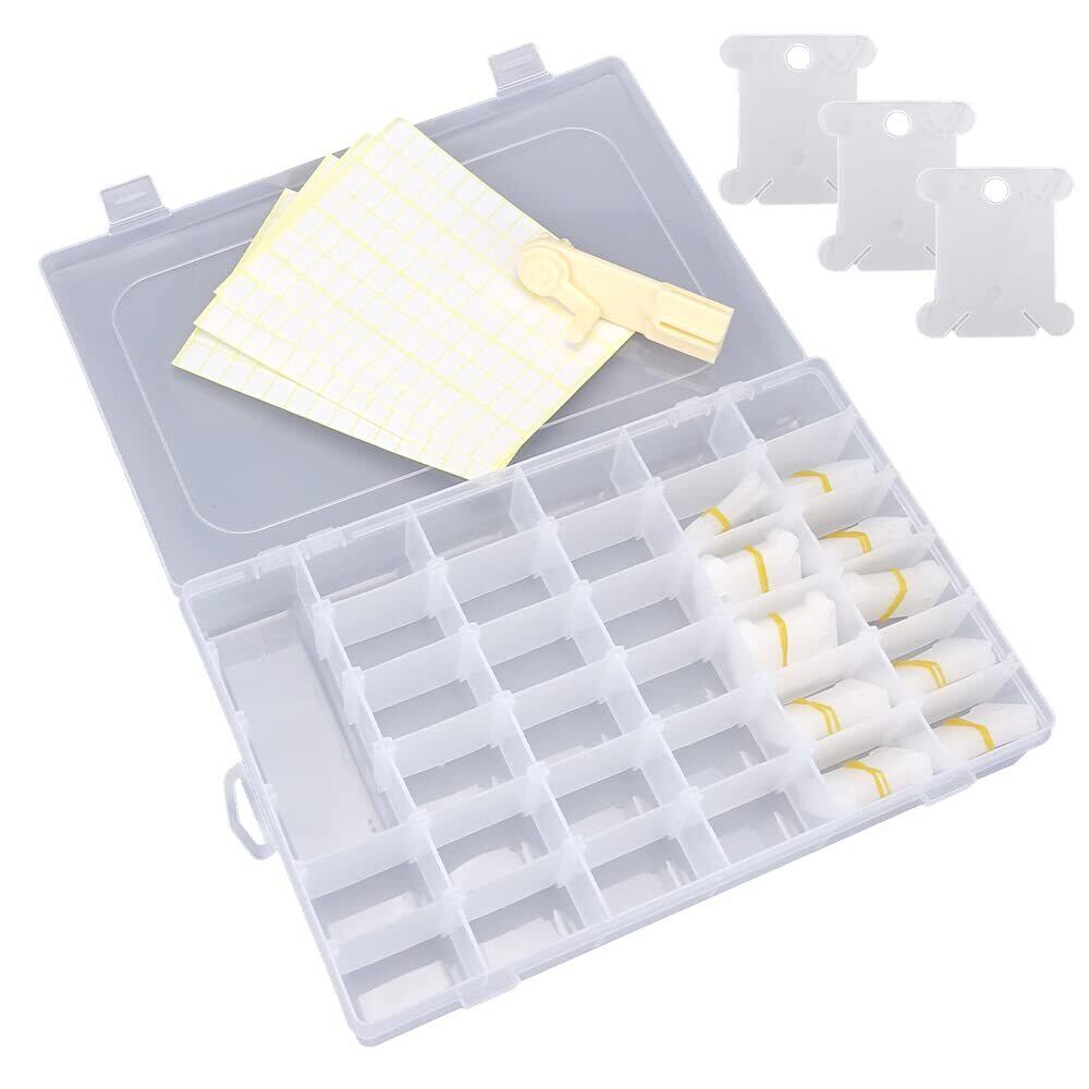ES-SLT 刺繍用品収納セット 収納ケース 刺繍糸 糸巻板 ステッカー 巻き取りホルダー 収納 クリア 大容量