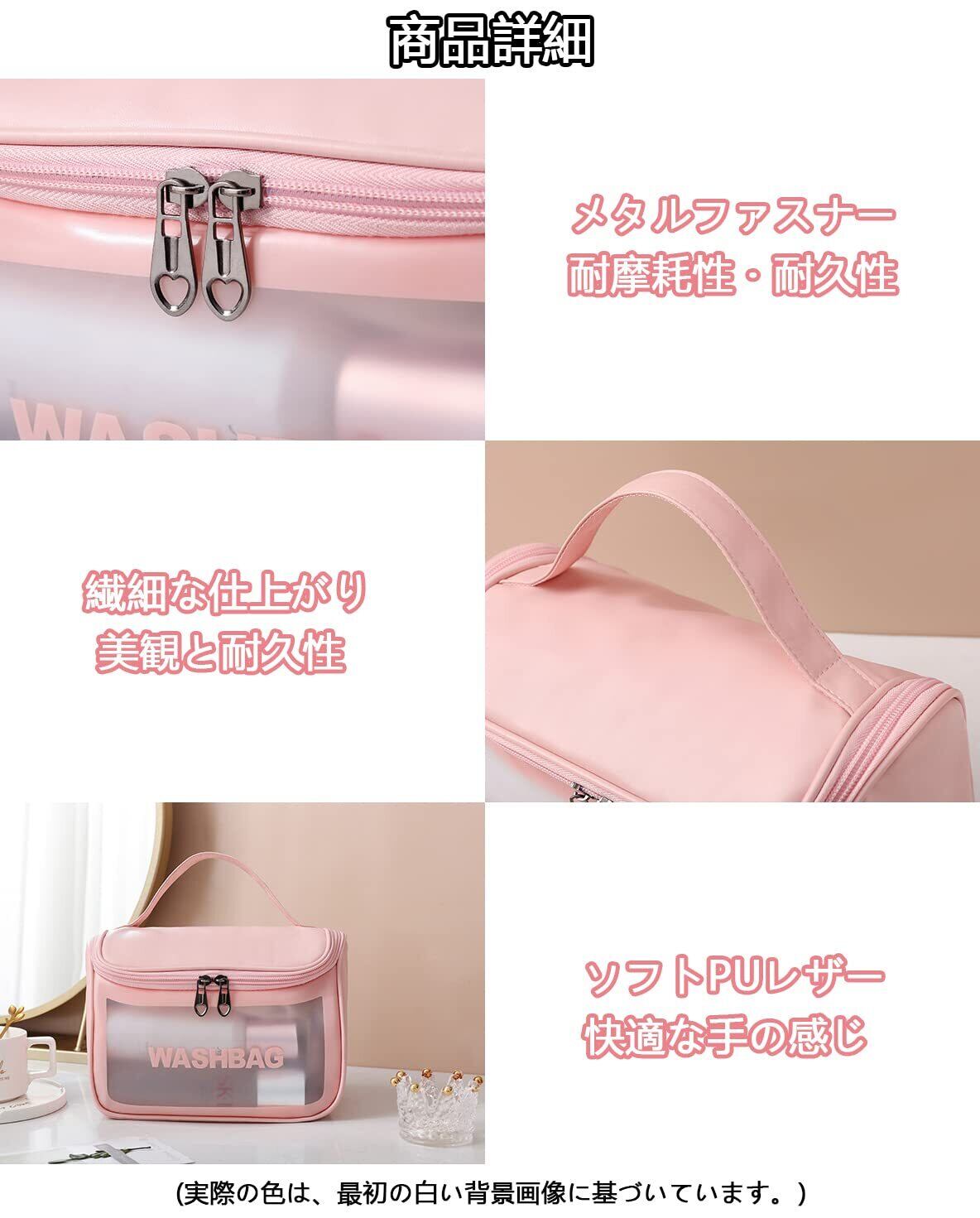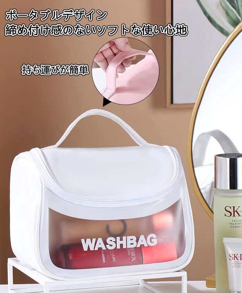 【透明窓】従来の化粧ポーチとは異なり、弊社の化粧ポーチは半透明なデザインで、安全で透明なPVC素材で作られており、中に何が収納されているのかはっきり見えます。口紅、リップグロス、メイクアップトレイ、ヘアブラシ、スキンケア用品、マニキュアなどの収納に最適です。収納が非常に簡単で、探す心配がありません。