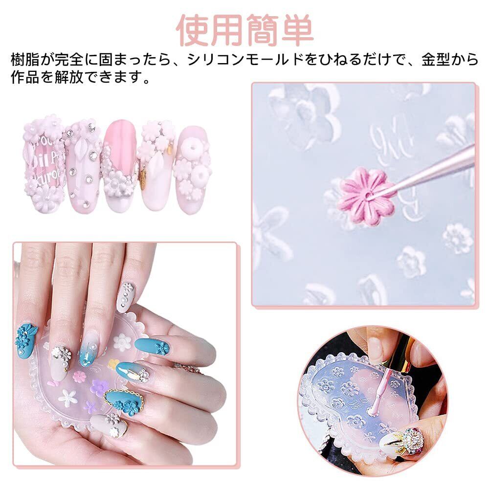サムコス シリコンモールド 4個セット リーフ 花 立体 ネイル 素材 ジェルネイル DIY ハンドメイド ネイルツール 樹脂 工芸品 装飾 レジン 抜き型 再利用可能
