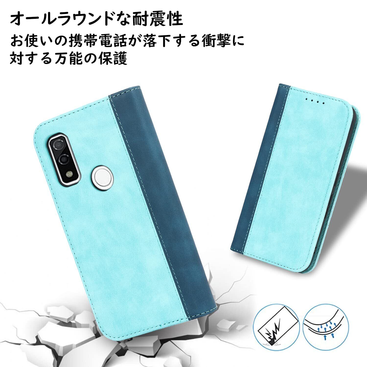 Havaya Arrows We ケース arrows we f-51b ケース Fujitsu アローズwe A101FC スマホケース FCG01docomo 手帳型 耐衝撃 カバー マグネット式 カード収納 スタンド機能 レザー-ライトブルー+ダークブルー