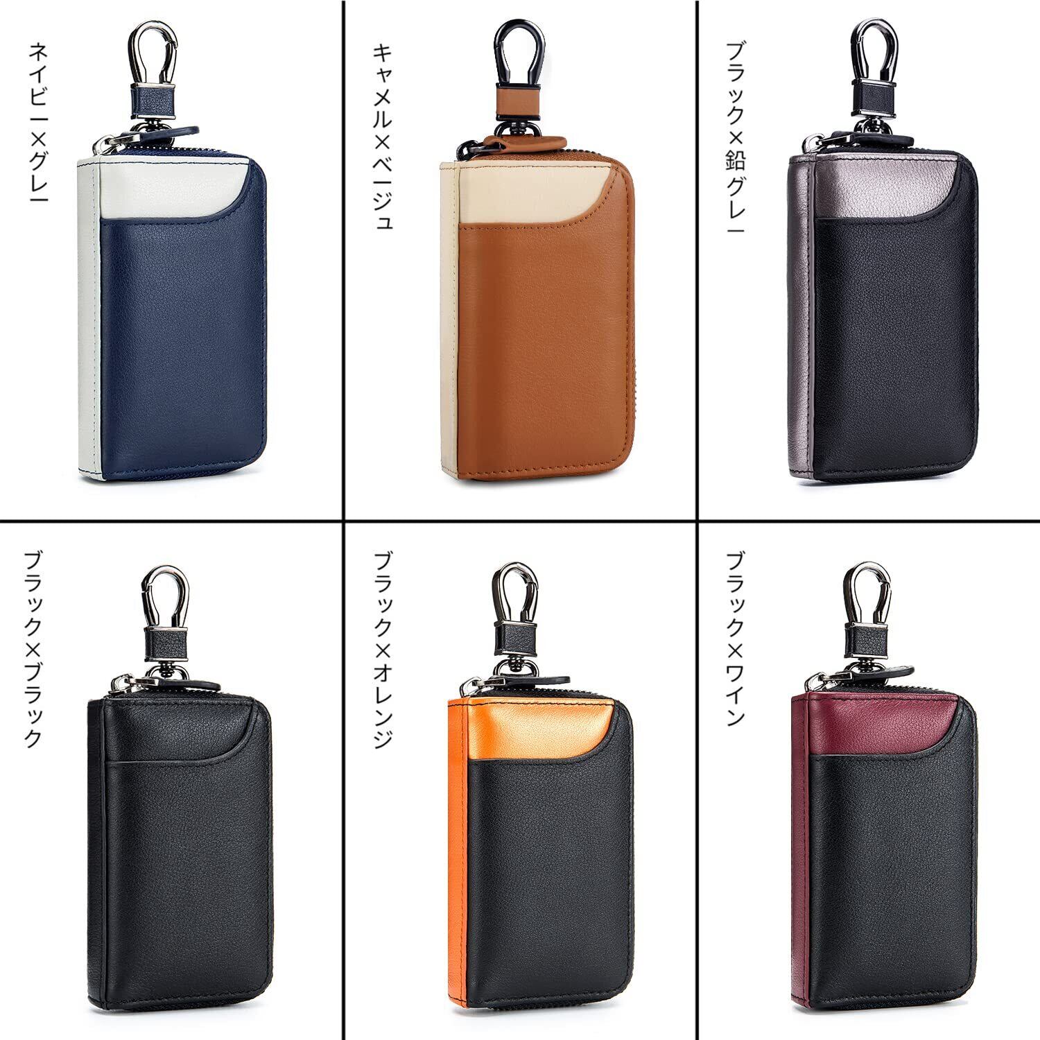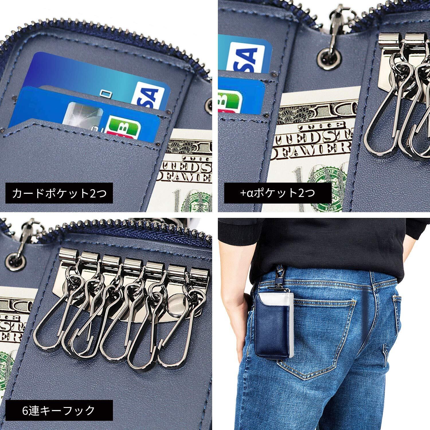 [MBOYU] キーケース メンズ 本革 2つ外側ポケット icカード 免許証 定期入れ スマートキーケース 車 バイク 鍵 収納 パスケース 6連 カラビナ 一体型 大きめ ファスナー おしゃれ シンプル プレゼント | yankees