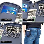 【大容量収納】◆カード6枚&鍵7本/8本 ●6連キーフック×1 ●外側カードポケット×2 ●内側カードポケット×2 ●+αポケット×2 ●チェーン付きキーリング×1。