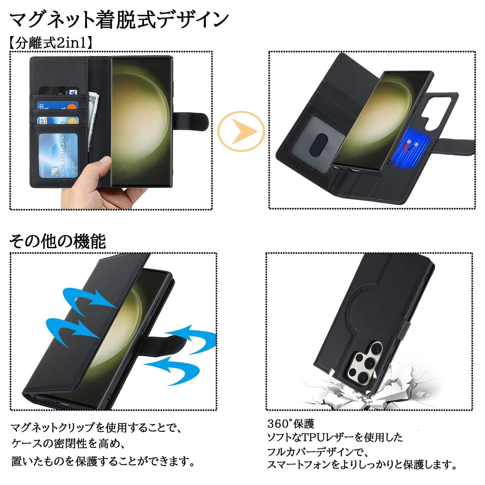 Havaya Galaxy S23 ultra ケース Magsafe 対応 ギャラクシーs23 ultra ケース SC-52D スマホケース SCG20 au S23ウルトラ 手帳型 マグセーフ レザー 【分離式2in1】 カード収納 ワイヤレス充電対応-ブラック