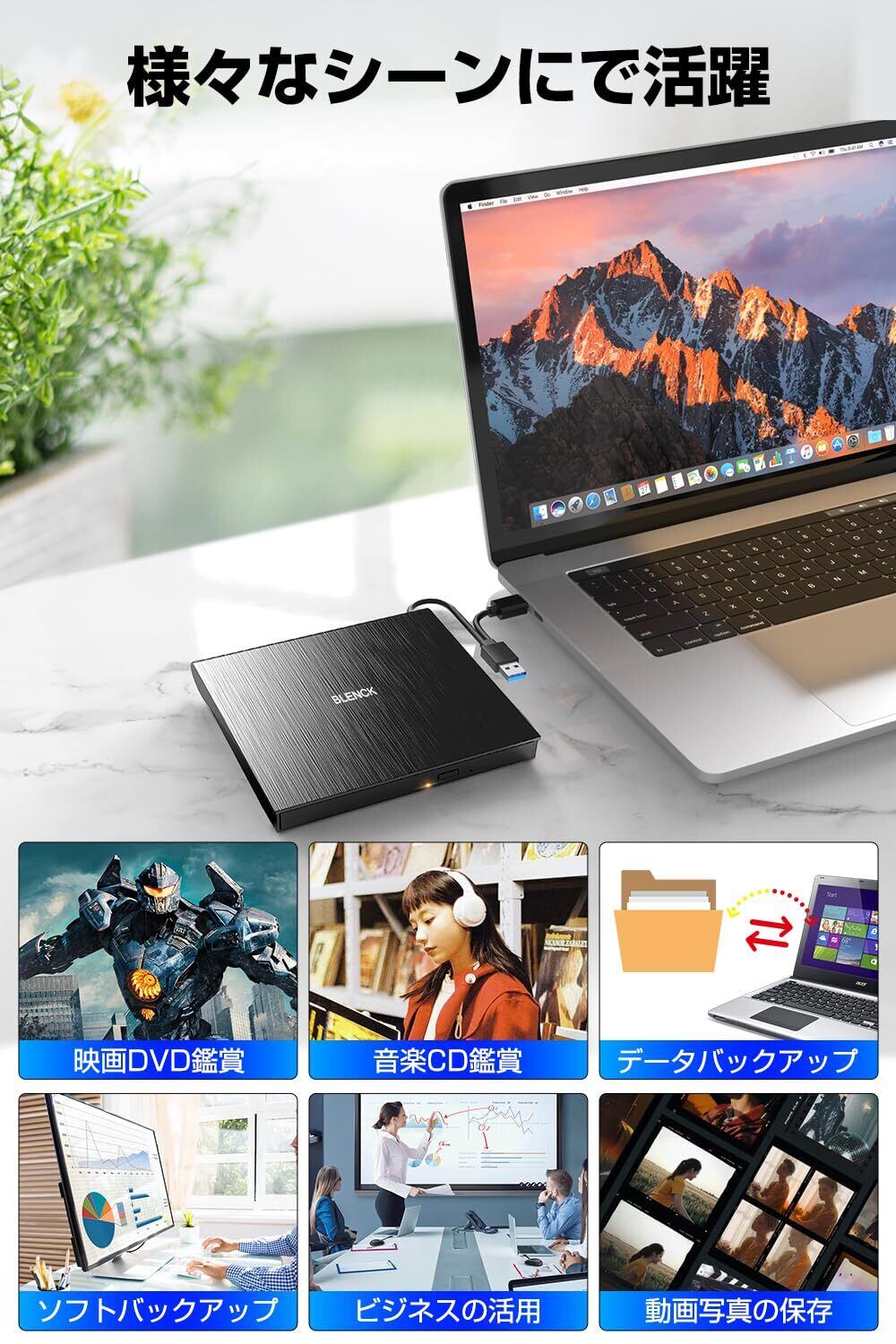 【速度と効率性・8XDVD & 24XCD】 驚くほど速い外付け cd/dvd ドライブ は、DVDは最大8倍速、CDは最大24倍速で読み取り&書き込みが可能です。たとえ大量のデータがあっても、あっという間に処理が完了。重要なビジネスシーンでも、レジャータイムでも、その効率性と速度はあなたの期待を超える 光学ドライブ 外付け とあんります。 【快適な使用環境・静音稼働】 この 外付けcdドライブ は静音設計となり、高速で高精度な処理をしながらも、その動作音は非常に静かです。集中したい作業時や静かな夜、リラックスしたいときでも安心してこの 外付けdvd を使用できます。高度な技術とユーザーの快適性が融合した究極の選択肢となる dvdプレイヤー です。
