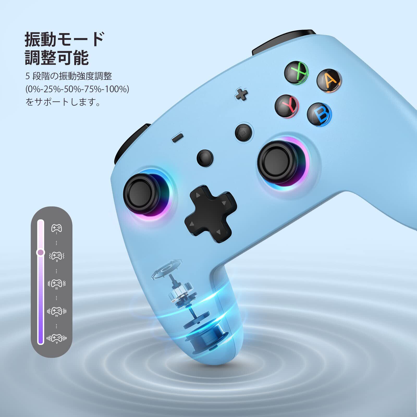Switch コントローラー ワイヤレス Bluetooth接続 二重振動 6軸ジャイロセンサー 連射機能 スリープ解除 長時間使用 Switch/Switch Lite/Switch OLED/Windows/Android/IOS対応 スイッチコントローラー プロコン ブルー