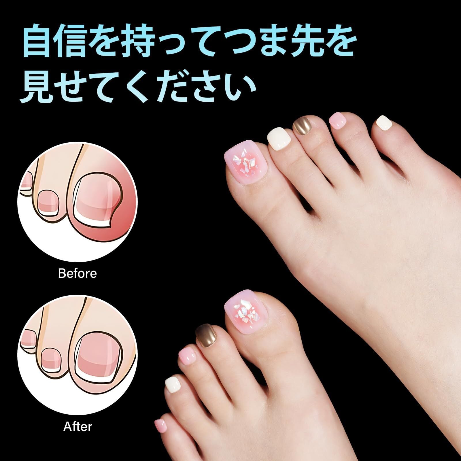 【多彩なアートデザイン】トミカのフットネイルはショートサイズとロングサイズをご用意。TOMICCAフェイクネイルとUVマニキュア、ディップパウダー、アクリルパウダーを組み合わせることで、高価なサロンにお金をかけずに簡単に完璧なネイルアートを作成できます。