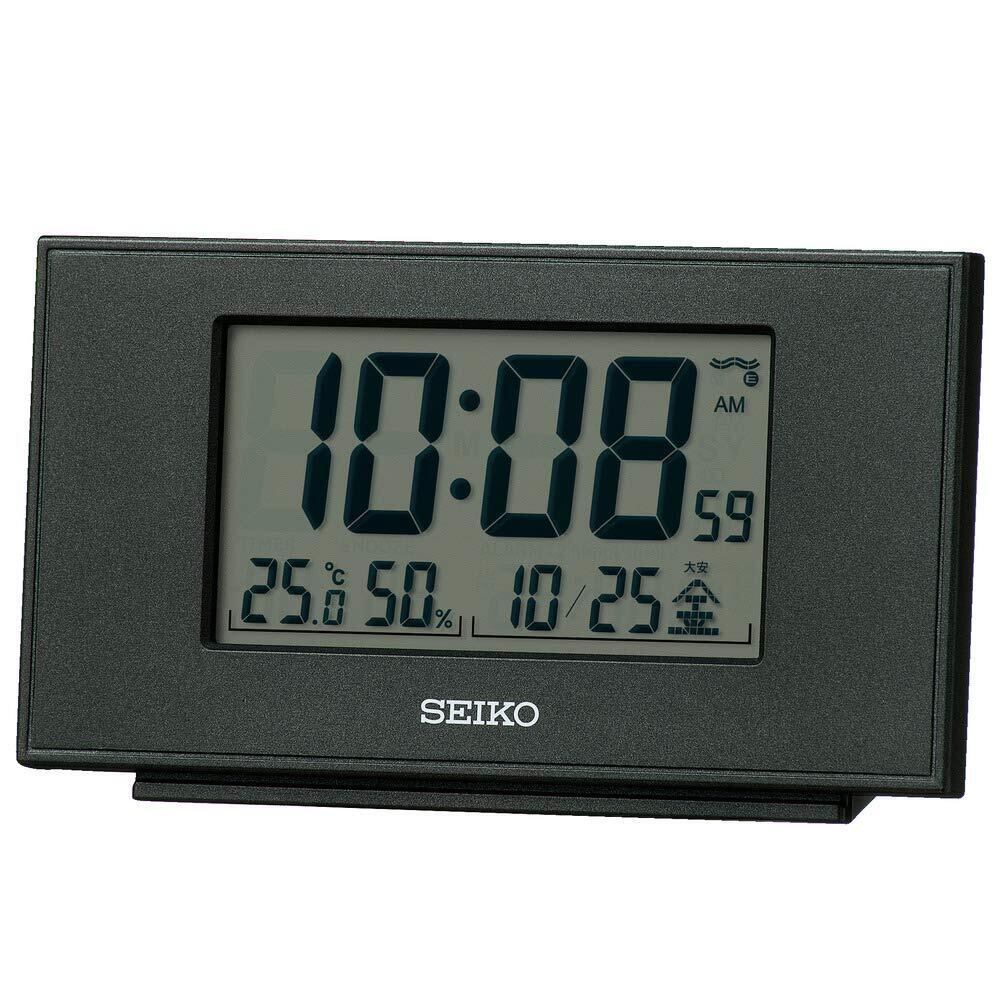 セイコークロック(Seiko Clock) 置き時計 黒メタリック 本体サイズ:7.8×13.5×3.8cm 目覚まし時計 電波 デジタル カレンダー 温度 湿度 表示 SQ790K | yankees