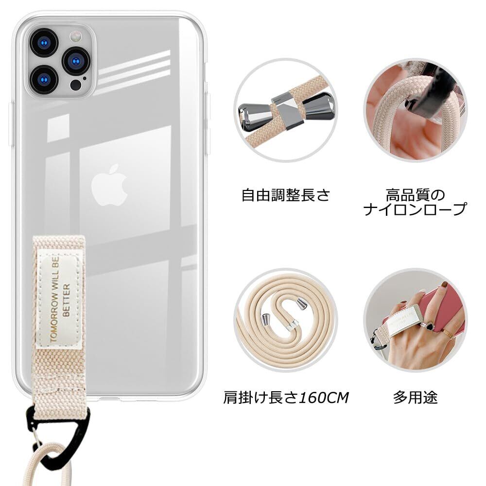 iPhone 15 Pro 用 ケース クリア ストラップ 肩掛け アイフォン15Pro カバー ストラップ付 縄掛け 斜めかけ 透明 TPU スマホシリコン 耐衝撃
