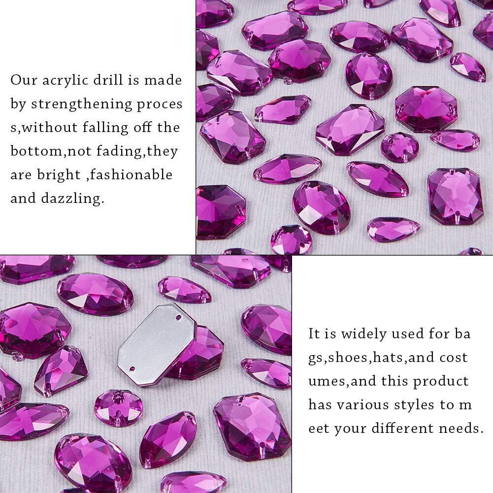 PH PandaHall 約70個/セット 7種 ビジュー パーツ 2穴 アクリル ラインストーン 縫製フラットバック カボション レジン封入 デコ素材 手芸用 クラフト ジェリー用 アクセサリーパーツ 手作り素材 装飾材料 パープル | yankees