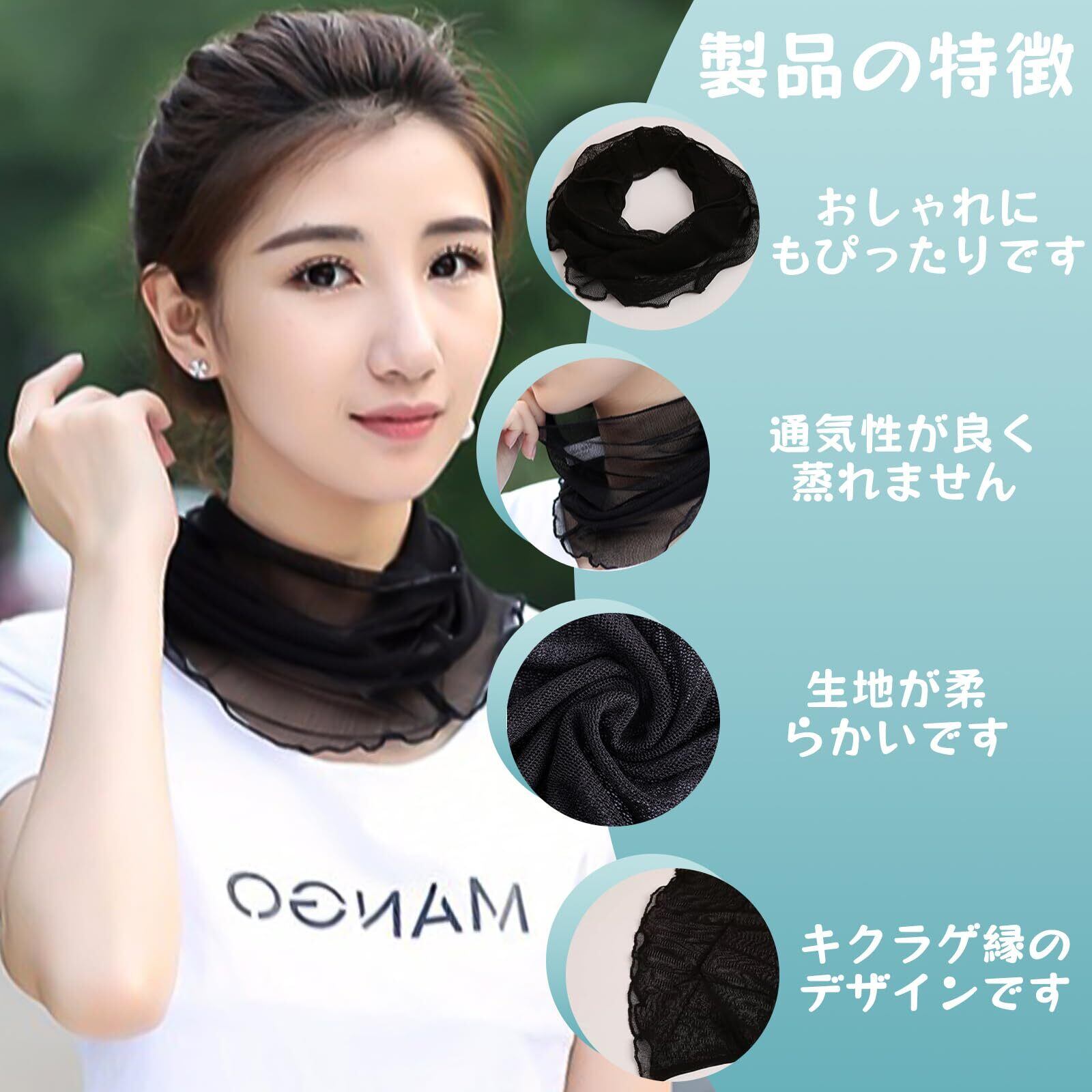 【ネックカバー】ネックカバーは必須 強い日差しから首元を守り、防寒、吸汗、いつでもサラサラ、サラサラのシルク生地。ストレッチチュールネット素材を使用していますので夏でも快適に日差しをガードしてくれます。気になる首もとをオシャレに日焼け防止。