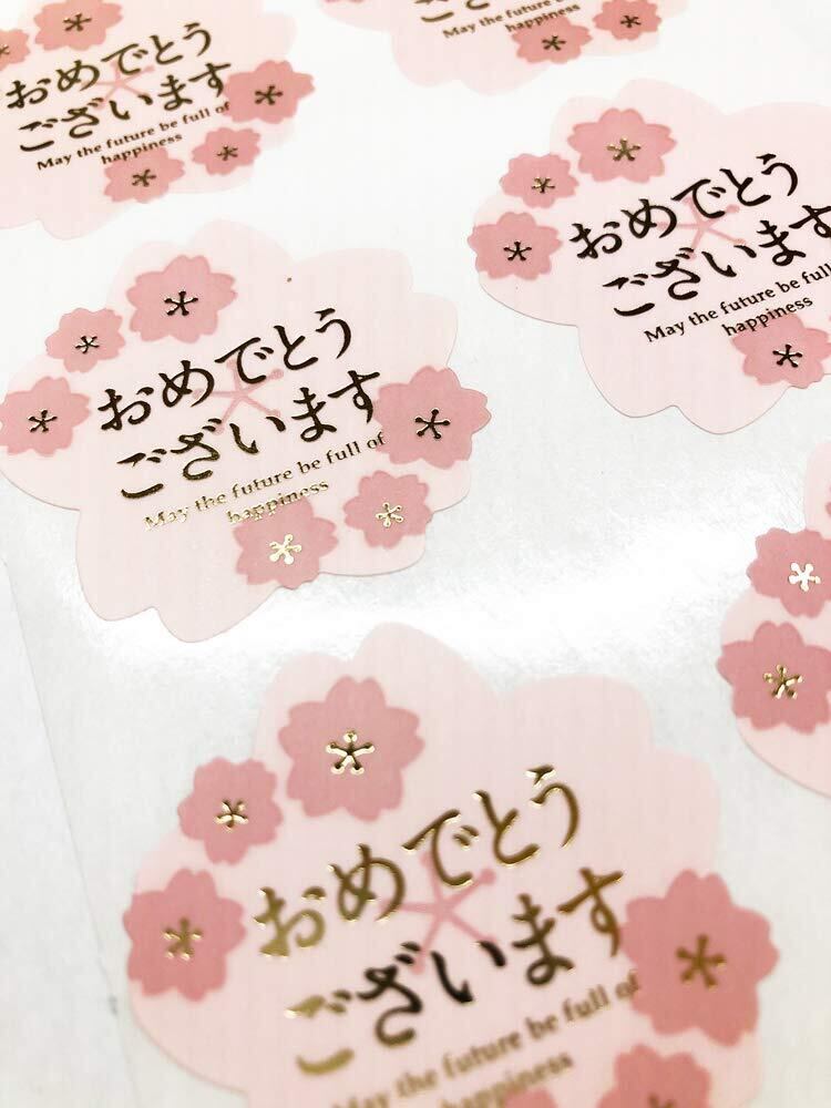 桜おめでとうございますシール 金箔押し