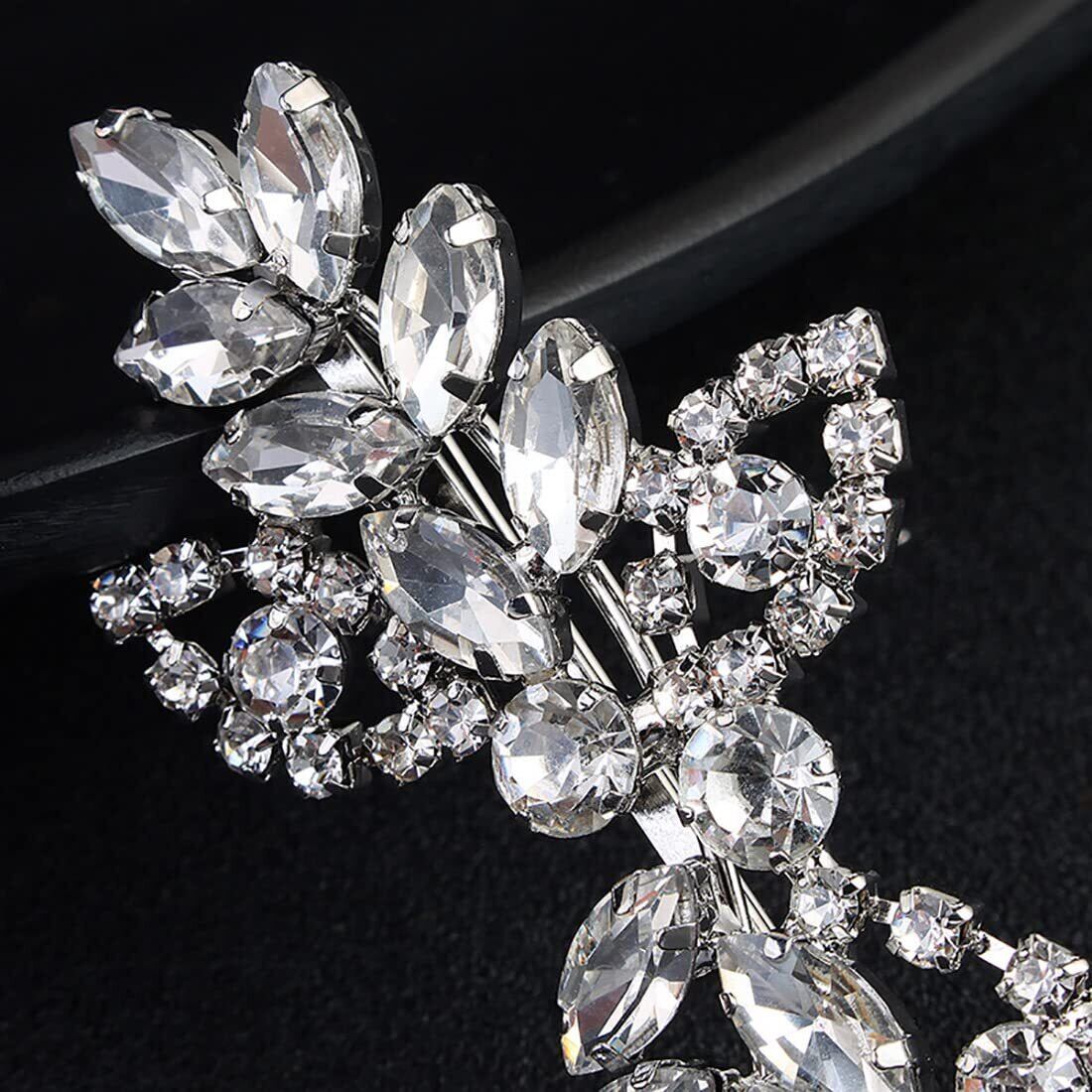Uongeodラインストーンブライダルヘアクリップ(2PCS)葉の結婚式のヘアピン花嫁パールクリスタルヘアクリップシルバーラインストーンのバレッタエレガントなブライダルヘアアクセサリー