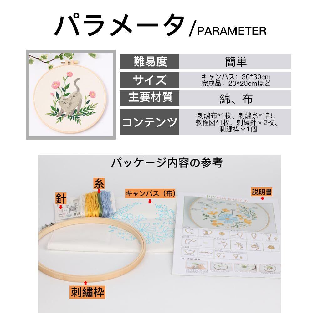 刺繡 ししゅうキット セット 初心者セット DIY刺しゅう 手作り 手工芸品 説明書付き かわいい (猫03)