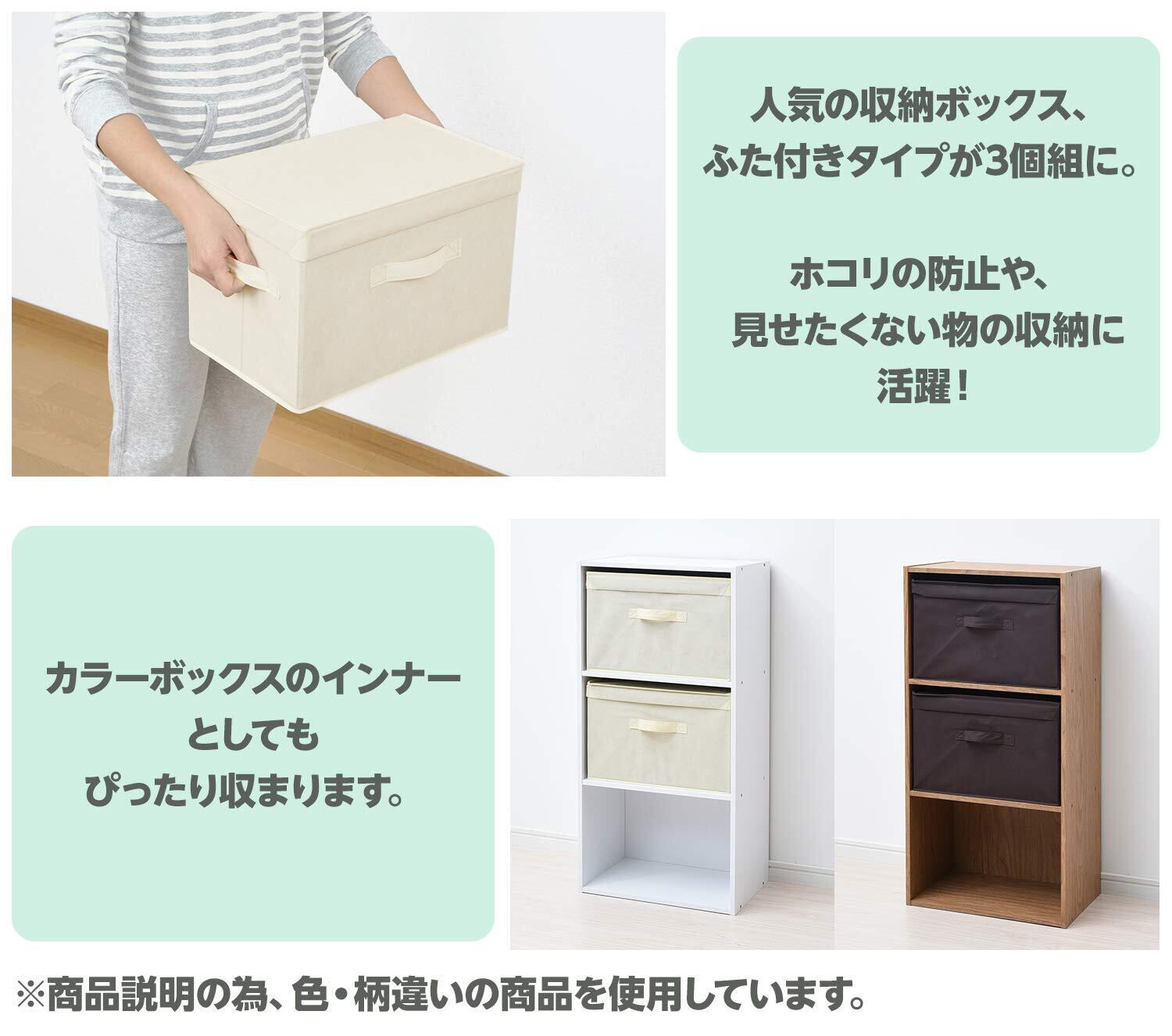 山善(YAMAZEN) どこでも 収納ボックス ふた付き 幅38×奥行25×高さ25cm 取っ手付き カラーボックス対応 完成品 ブラウン 3個組 YNF-3PF(BR)