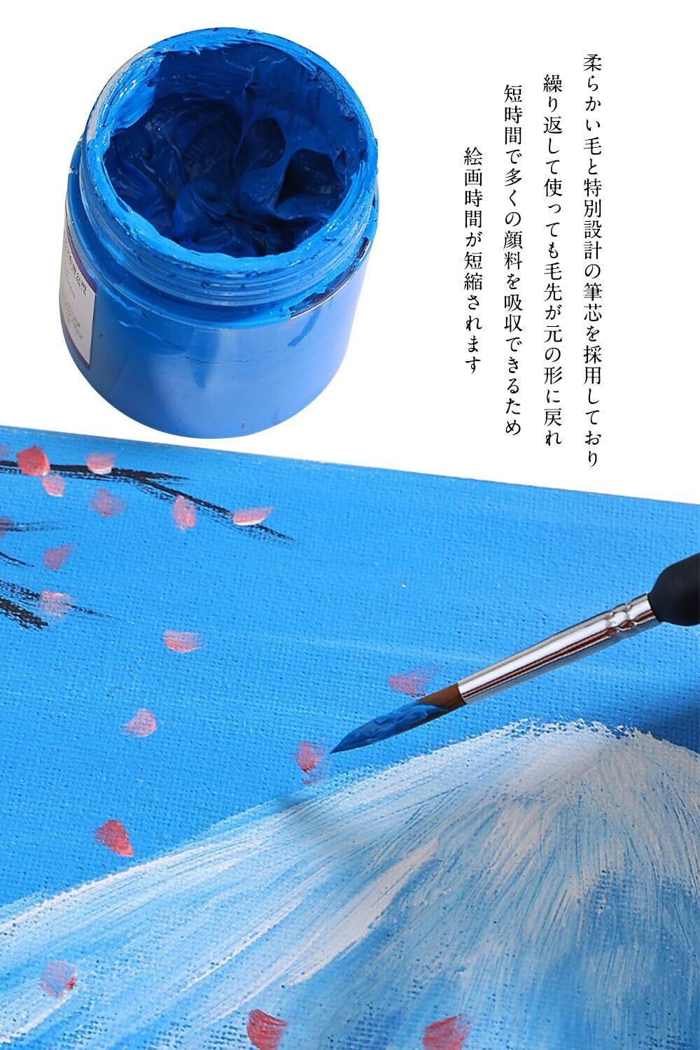 【適用範囲】アクリル塗料、水彩、油彩、油絵、水彩や顔ペイント、素焼きの陶器、模型塗装さまざまな絵具に対応します。各種類のブラシで別々の絵画を描けます、手芸用ペイント、ネイルやペイントなどのビューティーブラシ、一般的なブラシとしても使用できます。