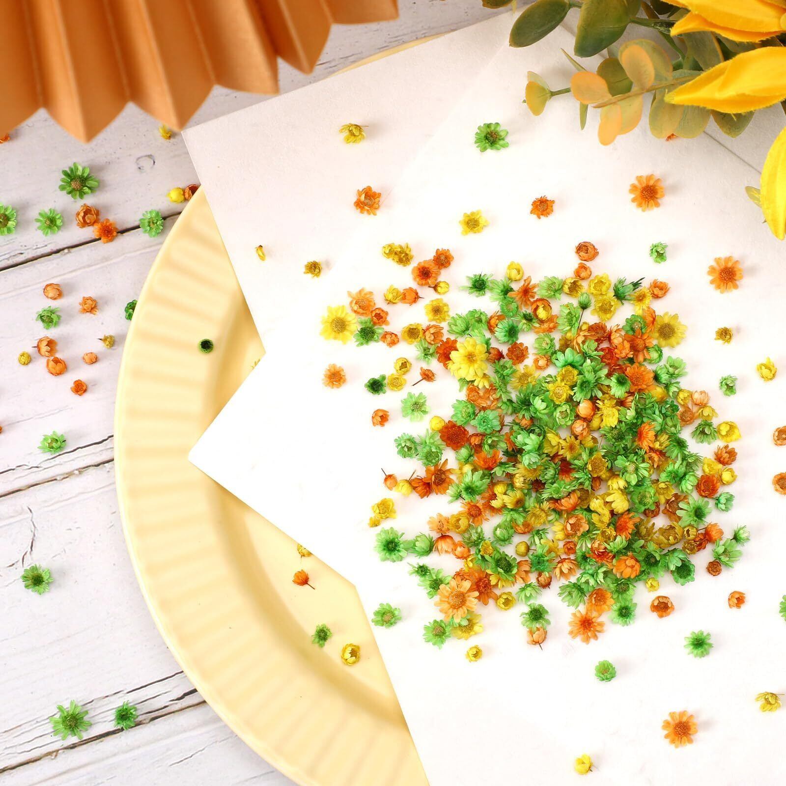 多彩なレジンパーツ:ドライフラワーセットには、多彩な色合いの押し花が含まれています。色合いが豊富で、黄色、蜜柑色、緑色、あらゆる色を楽しむことができます。好きな分だけ使用することて、自分なりのアイデアで工夫することができます
