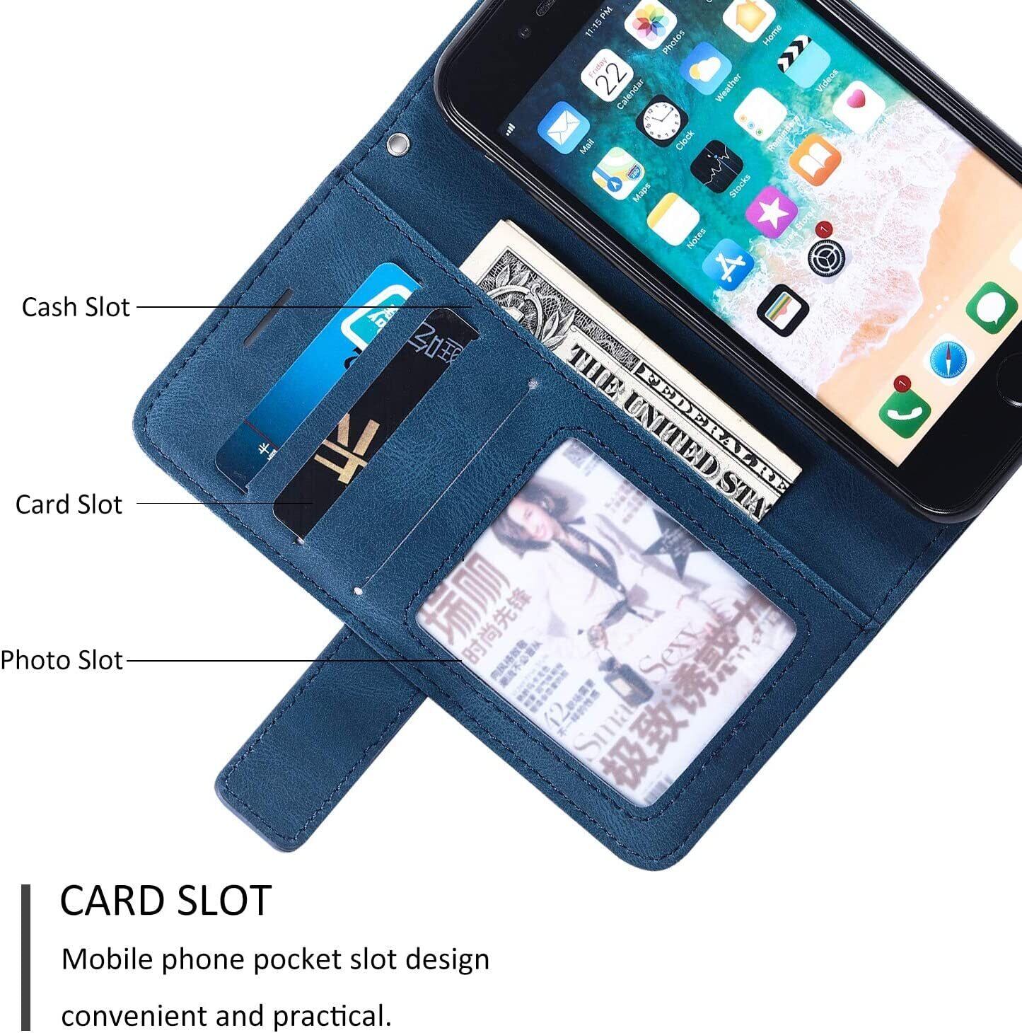 iPhone SE(第3世代),iPhone SE(第2世代), iPhone 7, iPhone 8兼用ケース 手帳型 財布型 カード収納 スタンド機能 サイドマグネット TPUケース 軽量 ストラップホール 収納力 QI充電対応 横置き機能 アイフォン レザーケース ソフトシリコン 全面保護 (iPhoneSE, ブルー)