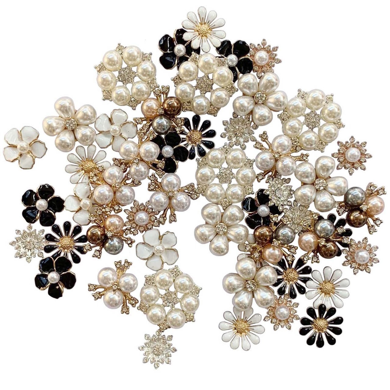 50個 合金ペンダント フラワー チャーム ラインストーン パール付き ジュエリー用 DIY ハンドメイド 手芸材料 手作り素材 クラフト用品