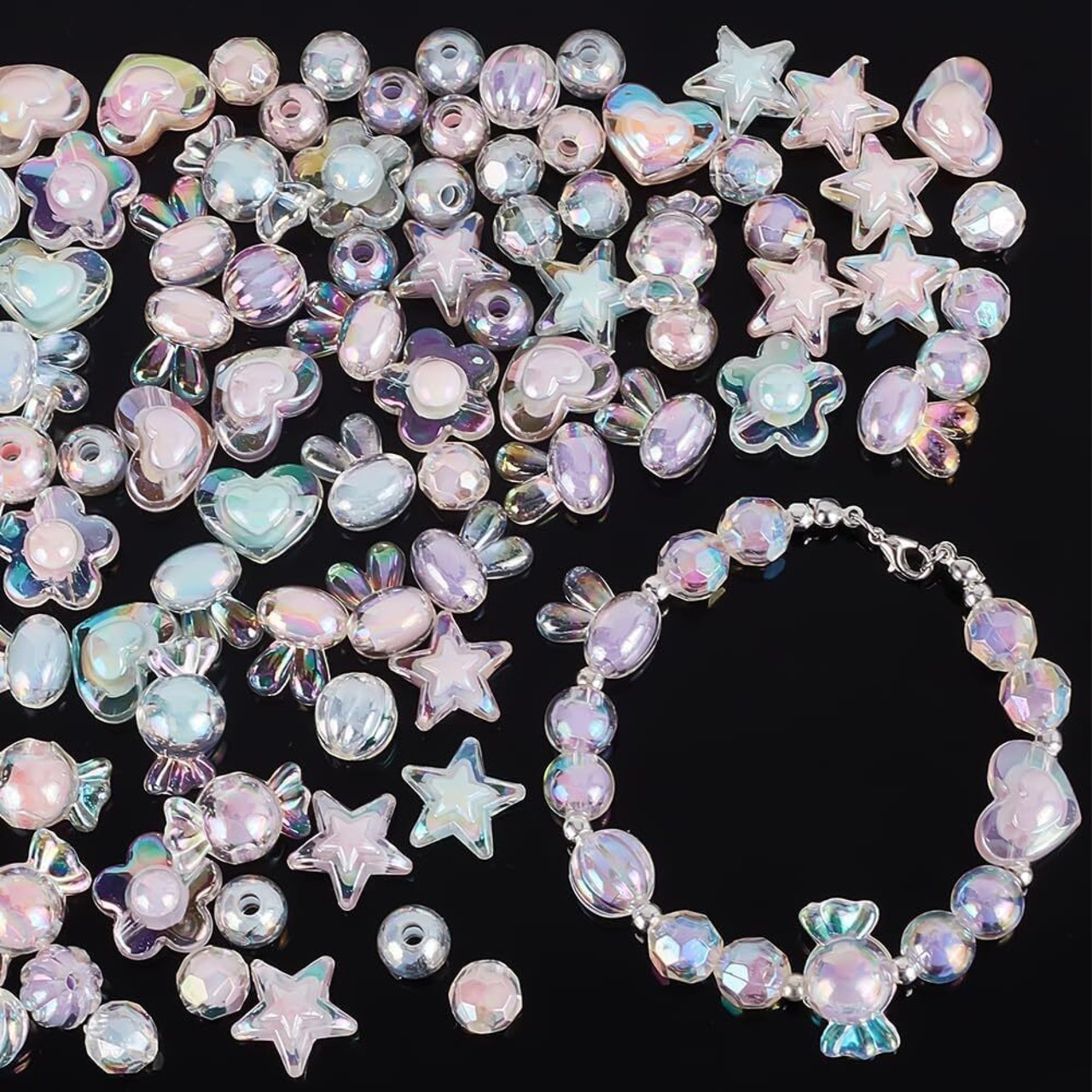PH PandaHall 約150個セット ビーズ アクリルビーズ 8種 ABカラー キラキラ 手芸ビーズ カラフル 柔らかい色 アクセサリーパーツ ブレスレット ネックレス 髪飾り スマホのストラップ ヘアゴム ハンドメイド 素材 収納ケース付き