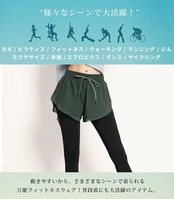 セット内容・1点・ヨガパンツ 脚のラインを気にせず履けるレギンスとパンツ一体型デザイン 可愛い お洒落 伸縮性 トレーニングウェア エクササイズ ヨガウェア 女性用