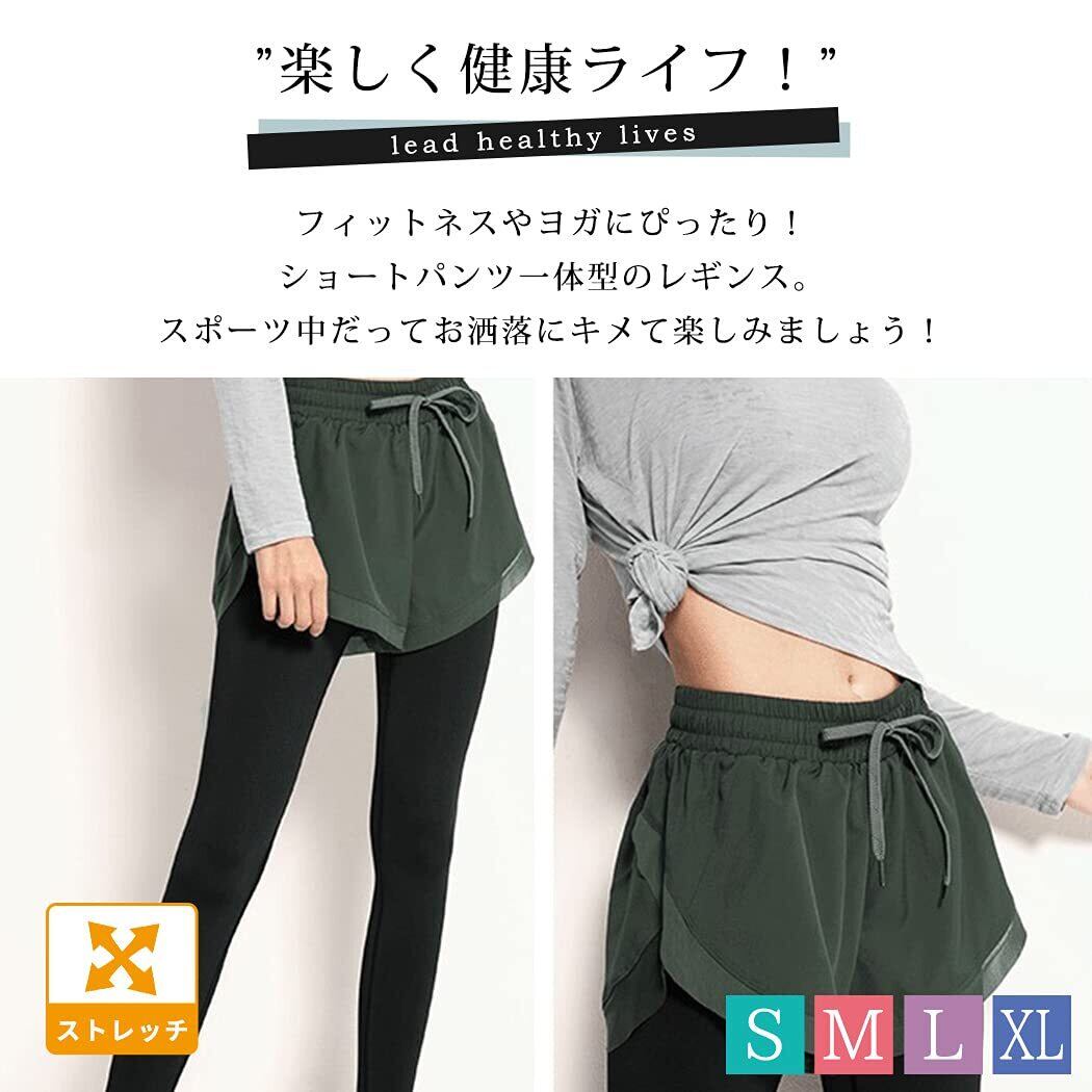 [Teddy] ヨガパンツ ショートパンツ一体型レギンス レディース 薄手 フィットネス スポーツウェア 吸汗速乾 yoga061