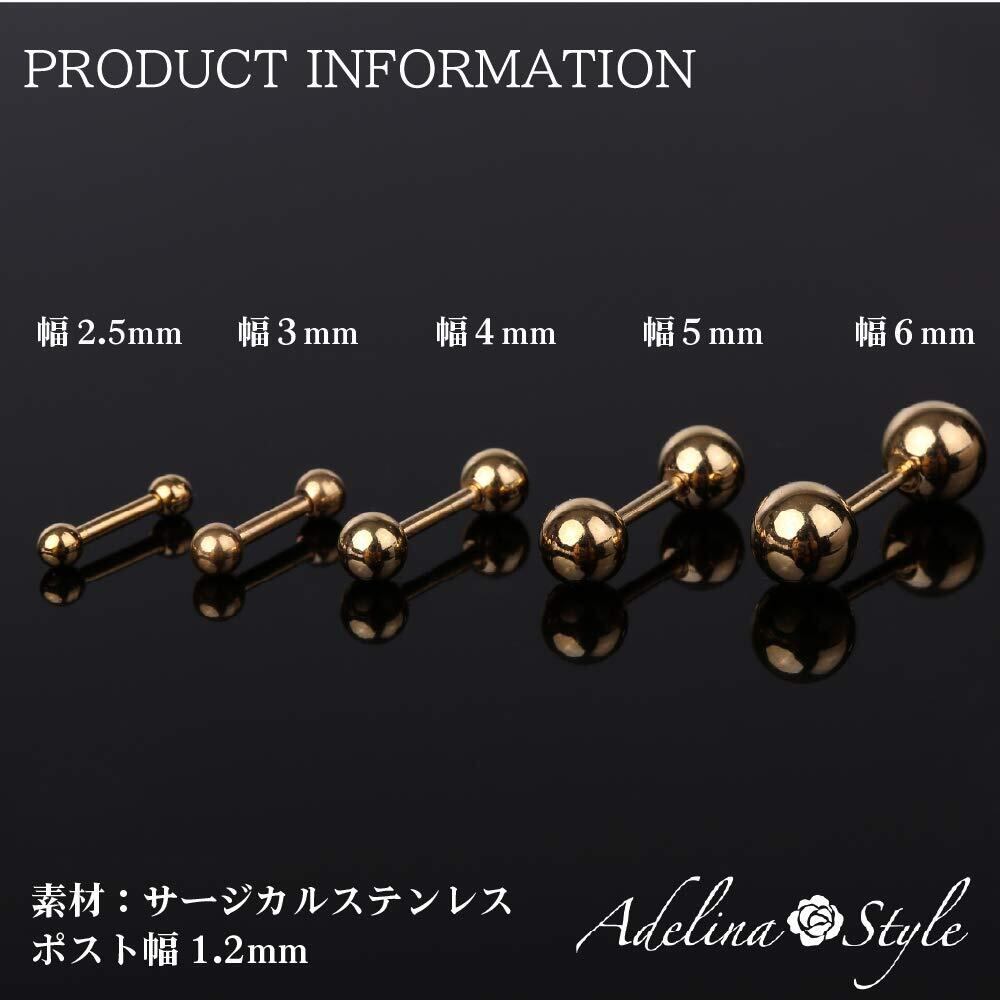 [Adelina Style] サージカルステンレス バーベル ボールピアス 丸玉 つけっぱなし 5ペアセット メンズ レディース 軟骨 ピアス 金属アレルギー対応