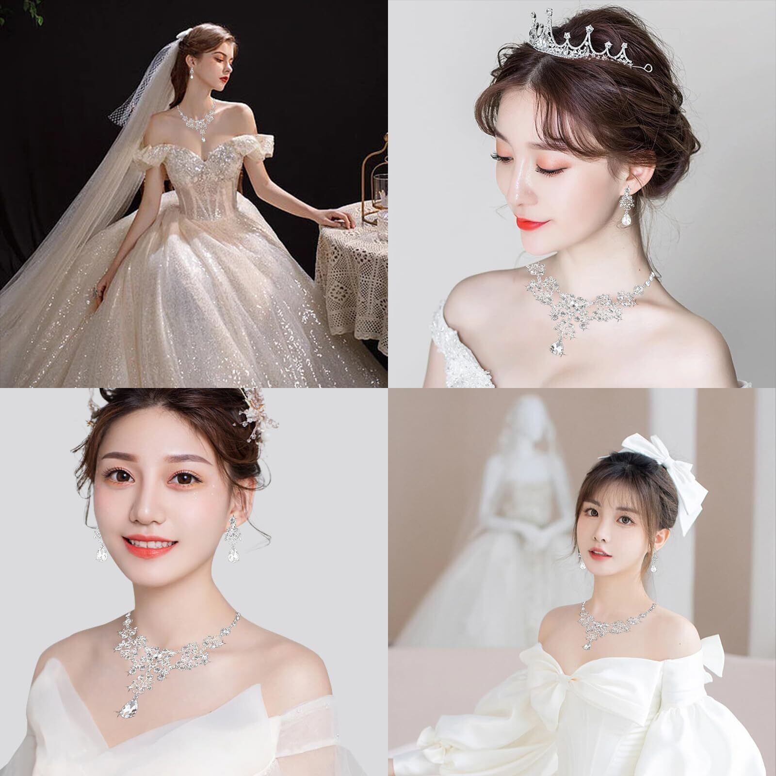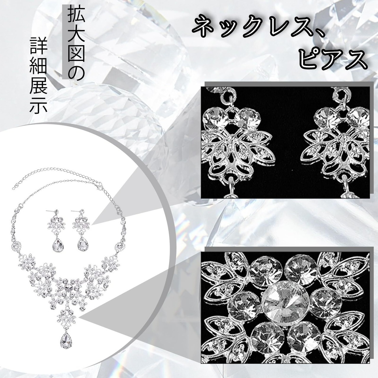 [Doyime] ネックレス ピアス (2点セット) レディース ブライダル イヤリング セット 花嫁 キラキラ クリスタル 誕生日 発表会 母の日 クリスマス プレゼント アクセサリー シルバー