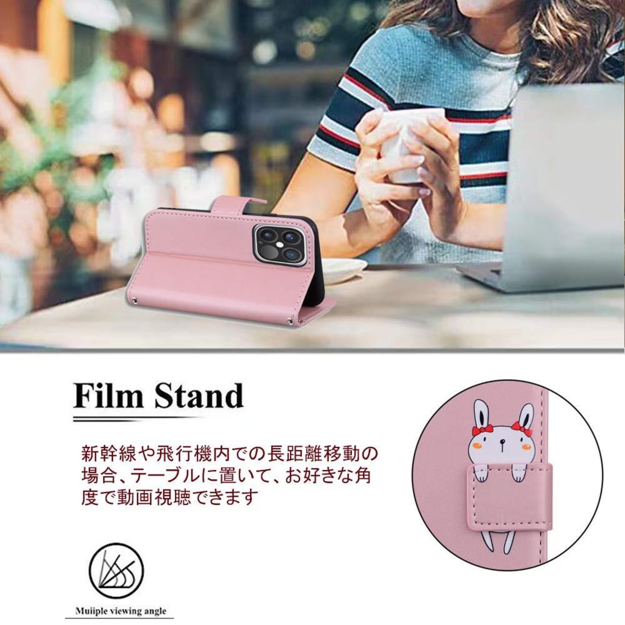 ❹【かわいいウサギちゃんのデザインと上質な素材】可愛い兔のモチーフと上品なレザーの組み合わせるケースであり、高級感ある色合いでちょっぴり大人なスマホケース。裏側ケースはソフトのtpuで仕上げられて、着脱も便利です。