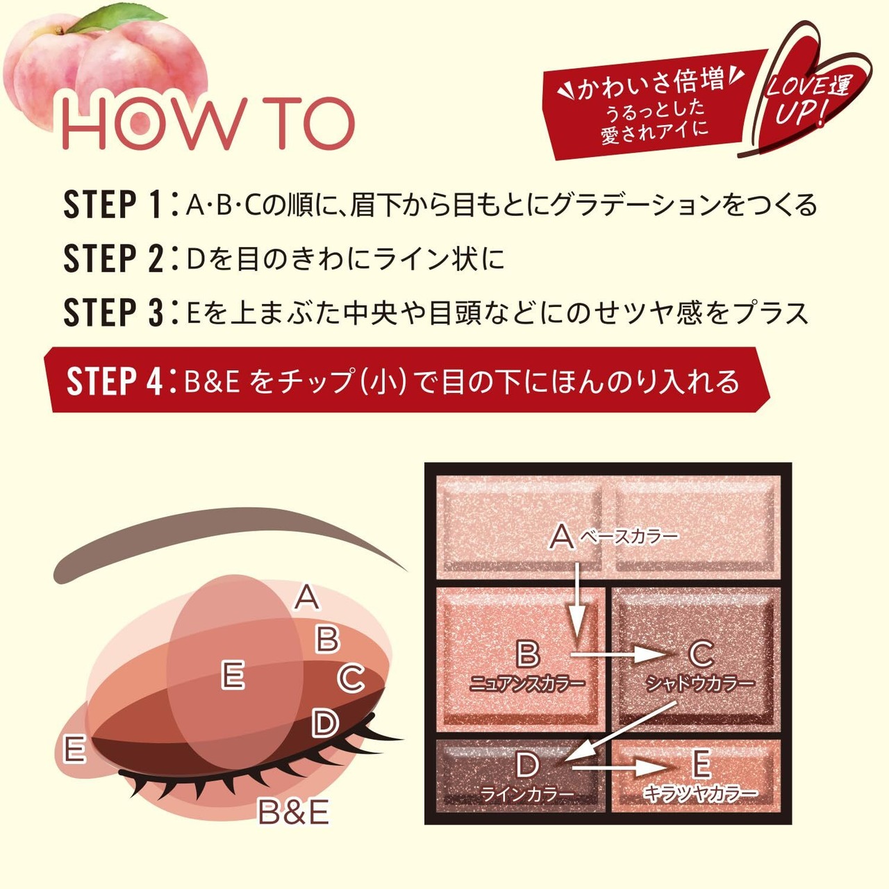 ●Aを下まぶたにつけると立体感が生まれ、より大きな目元に仕上がります。