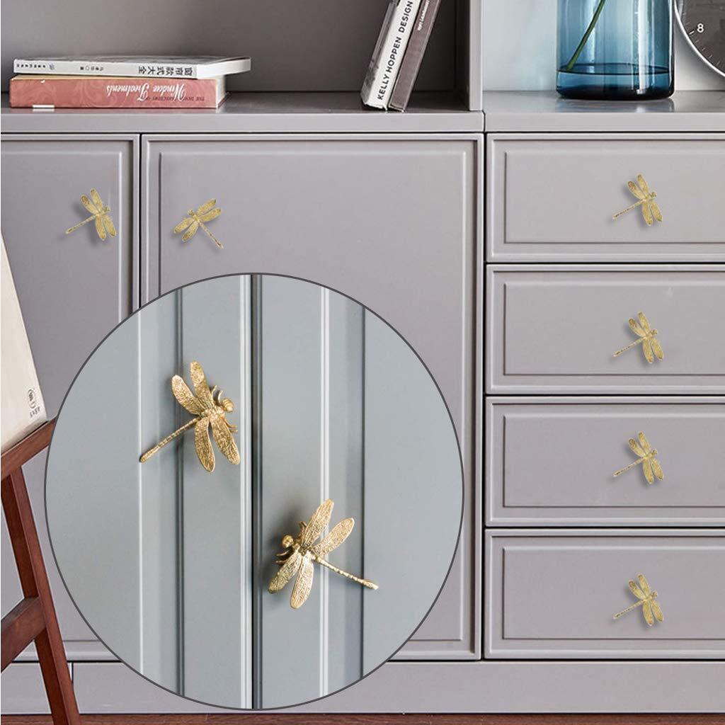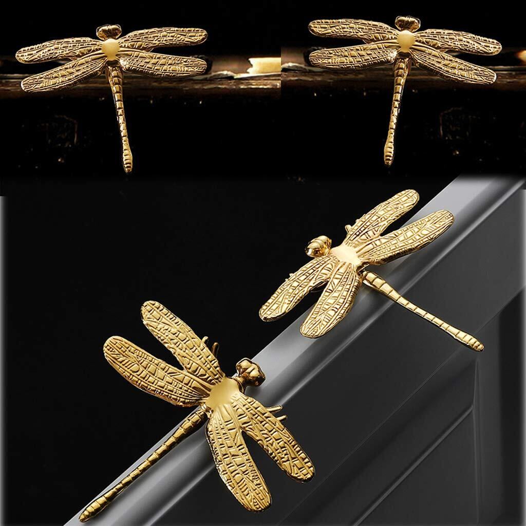 Sumnacon 取っ手 つまみ 真鍮 アンティーク 可愛いトンボ おしゃれ ネジ付き タンス キャビネット 食器棚 引き出しノブ 取手 ハンドル 飾り金具 2個セット (ゴールド)
