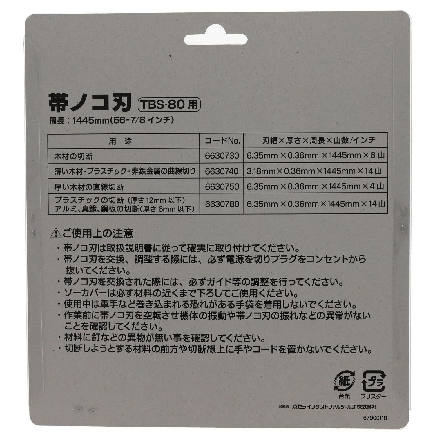 京セラ(Kyocera) 旧リョービ 帯鋸刃 木工厚板用 卓上バンドソー TBS-80用 6630750