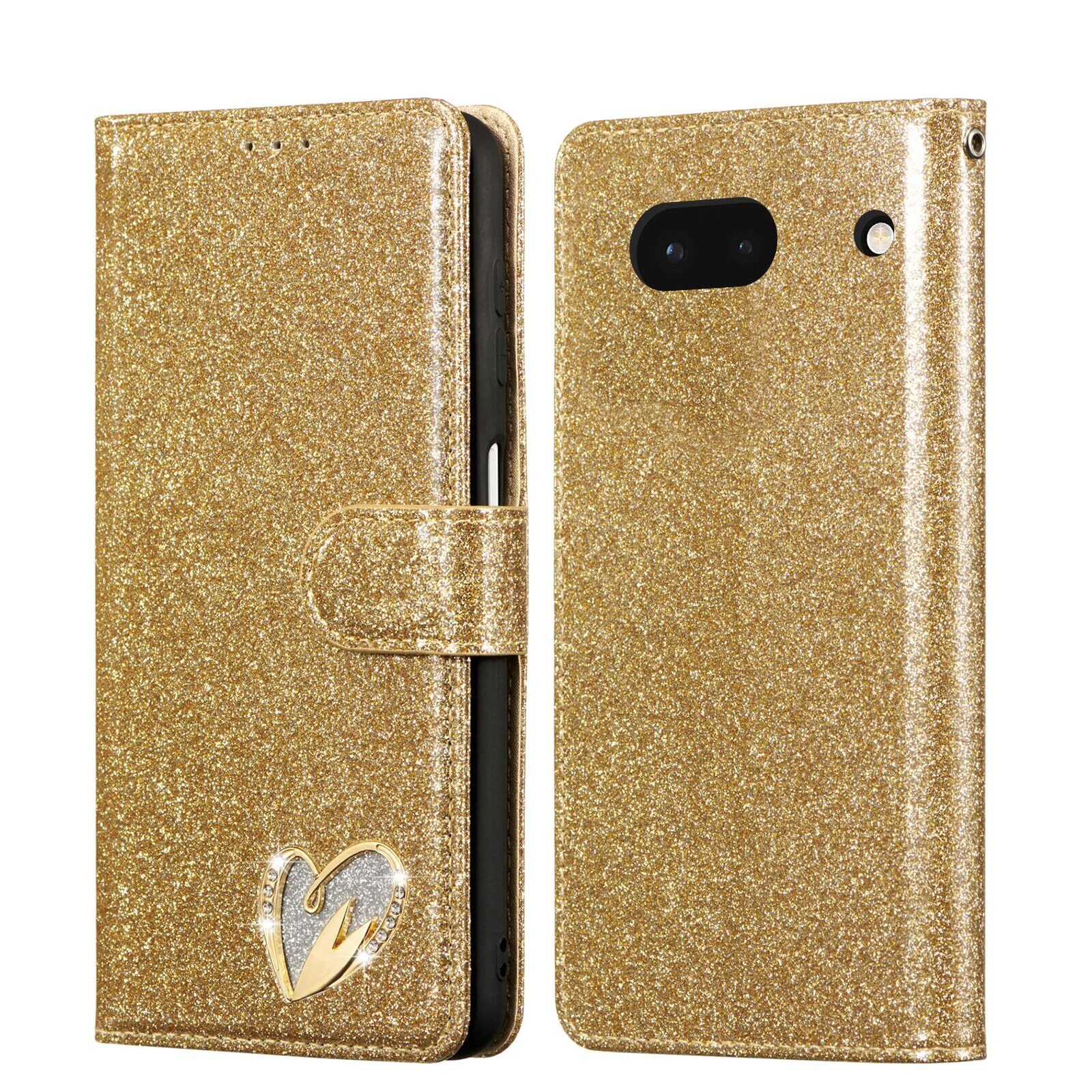 Google Pixel 6A ケース 手帳型 携帯ケース 人気 おしゃれ グーグルピクセル6a ケース カバー 手帳型 スマホケース 高級PUレザー 防水 全面保護 pixel6a ケース 手帳型 ラブハート柄 Google Pixel 6a ケース カバー 手帳型 スマホケース ピクセル 6a カバー 財布型 カード収納 マグネット式 スタンド機能【6.1インチ】ゴールド
