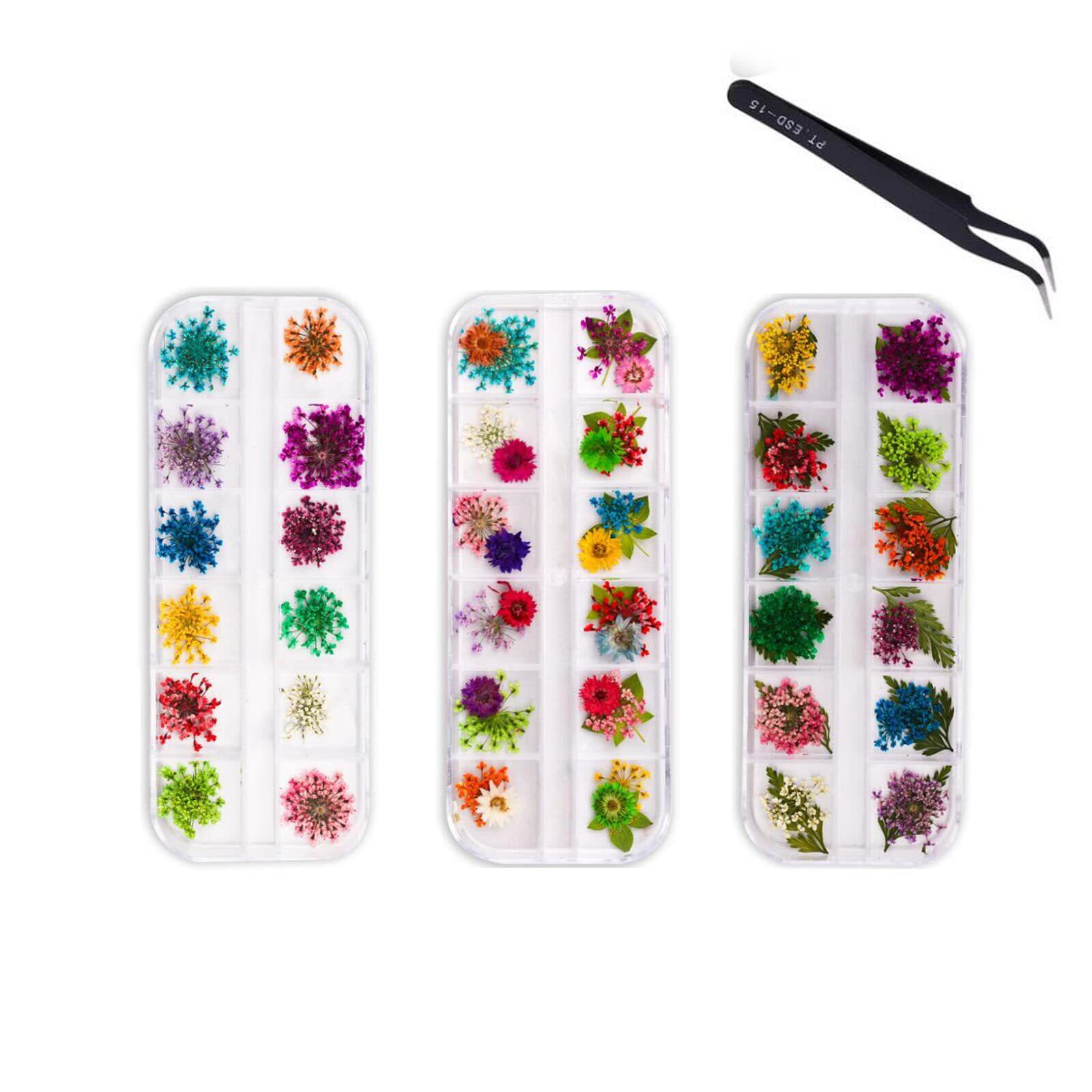 YFFSFDC ネイル押し花ドライフラワー ネイルアート レジン用 レース 3Dネイル レジン 3ケースセット