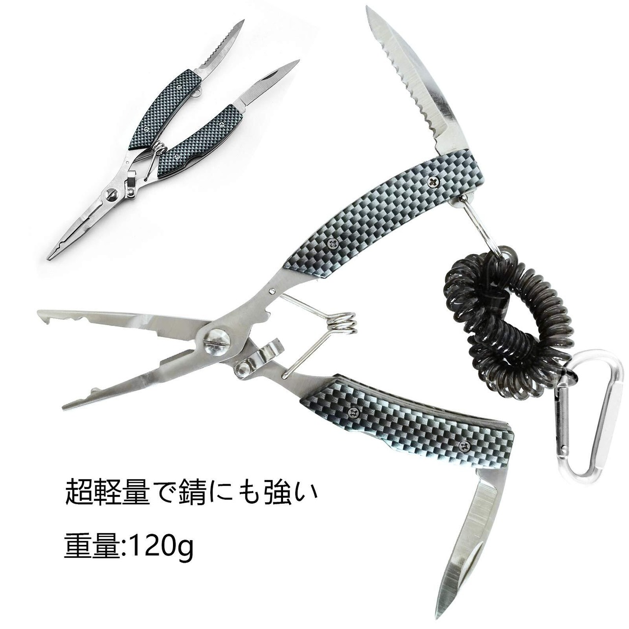 DanYun フィッシングプライヤー 釣り用ペンチ 釣りプライヤー 超軽量 多機能 針はずし フックはずし ラインカッター ステンレス鋼2CR13 錆びない 携帯便利 4点セット 安全ロープ+カラビナ+収納ケース付き | yankees