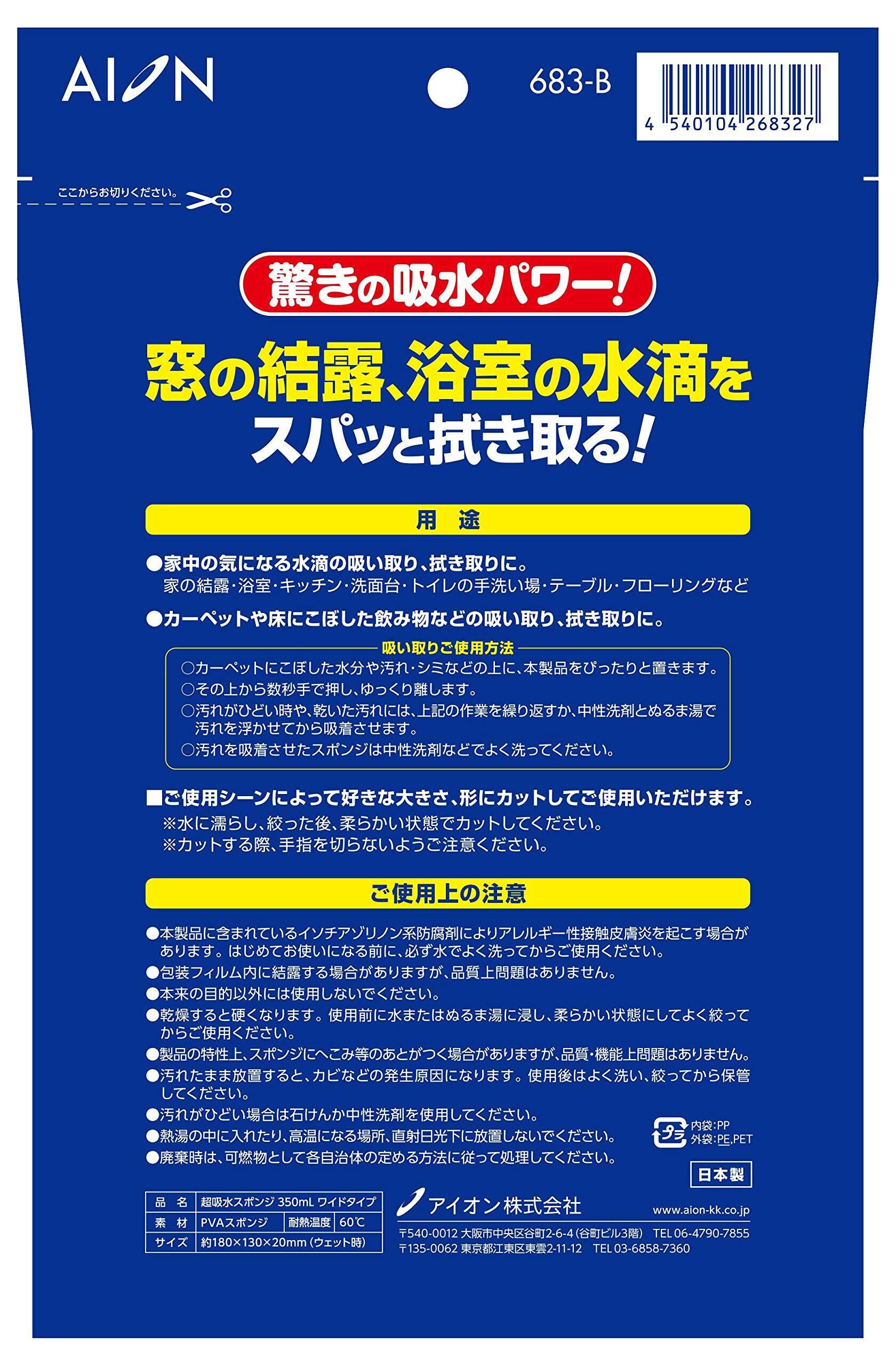 アイオン(Aion) 超吸水スポンジ ブルー 最大吸水量 約350ml 1個入 日本製 PVA素材 絞ればすぐに元の吸水力復活 結露対策 水滴ちゃんとふき取り 683-B