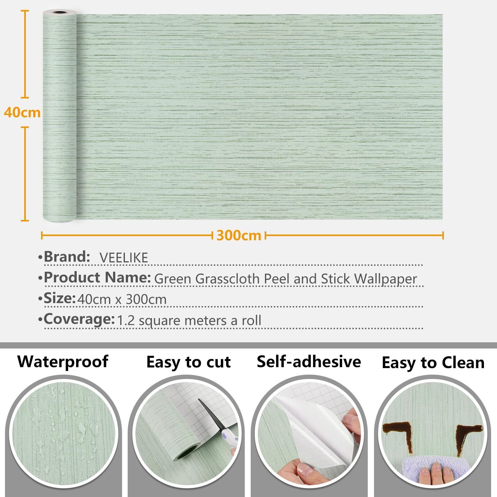 VEELIKE 織物調 壁紙シール リメイクシート ミントグリーン 剥がせるシール リフォームシート 40x300cm 表面ザラザラ カッティングシート のり付き 耐熱シート 押入れシート ふすま紙 リフォームシート 張り替えシート ウォールステッカー 家具 リアル質感 補修 DIY 模様替え 手入れ簡単 厚手 耐摩擦 油汚れ・水濡れに強い 撥水 リビング テーブル テレビ台 賃貸ok