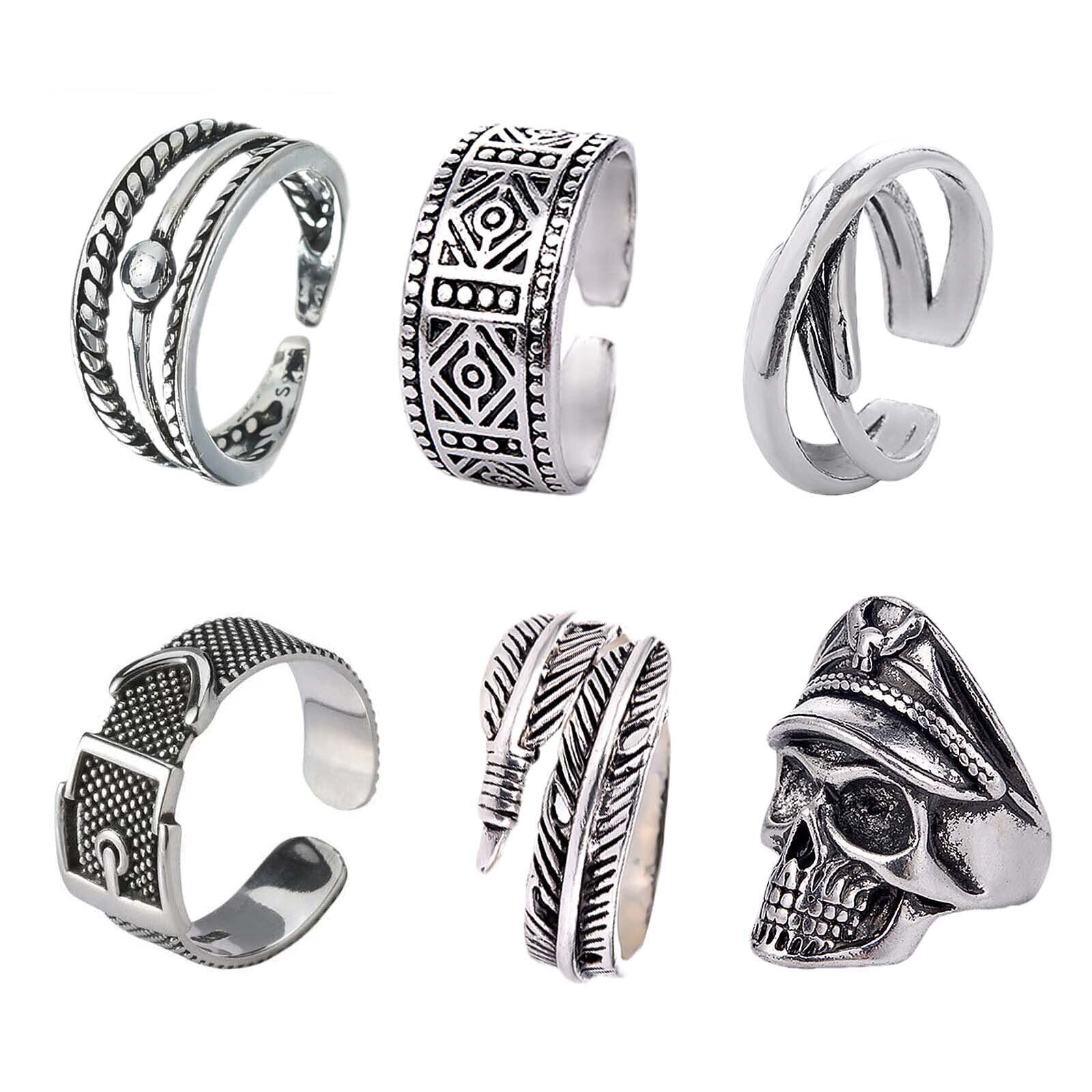 Coollooda 指輪 【6点】 メンズ リング 透かし 指輪 透かし彫り調節可能 パンク ヒップホップ アンティーク風 フリーサイズ ファッション ファッション シンプル アクセサリー プレゼント 記念日 誕生日 ギフト 人気 セット 合金 連リング | yankees