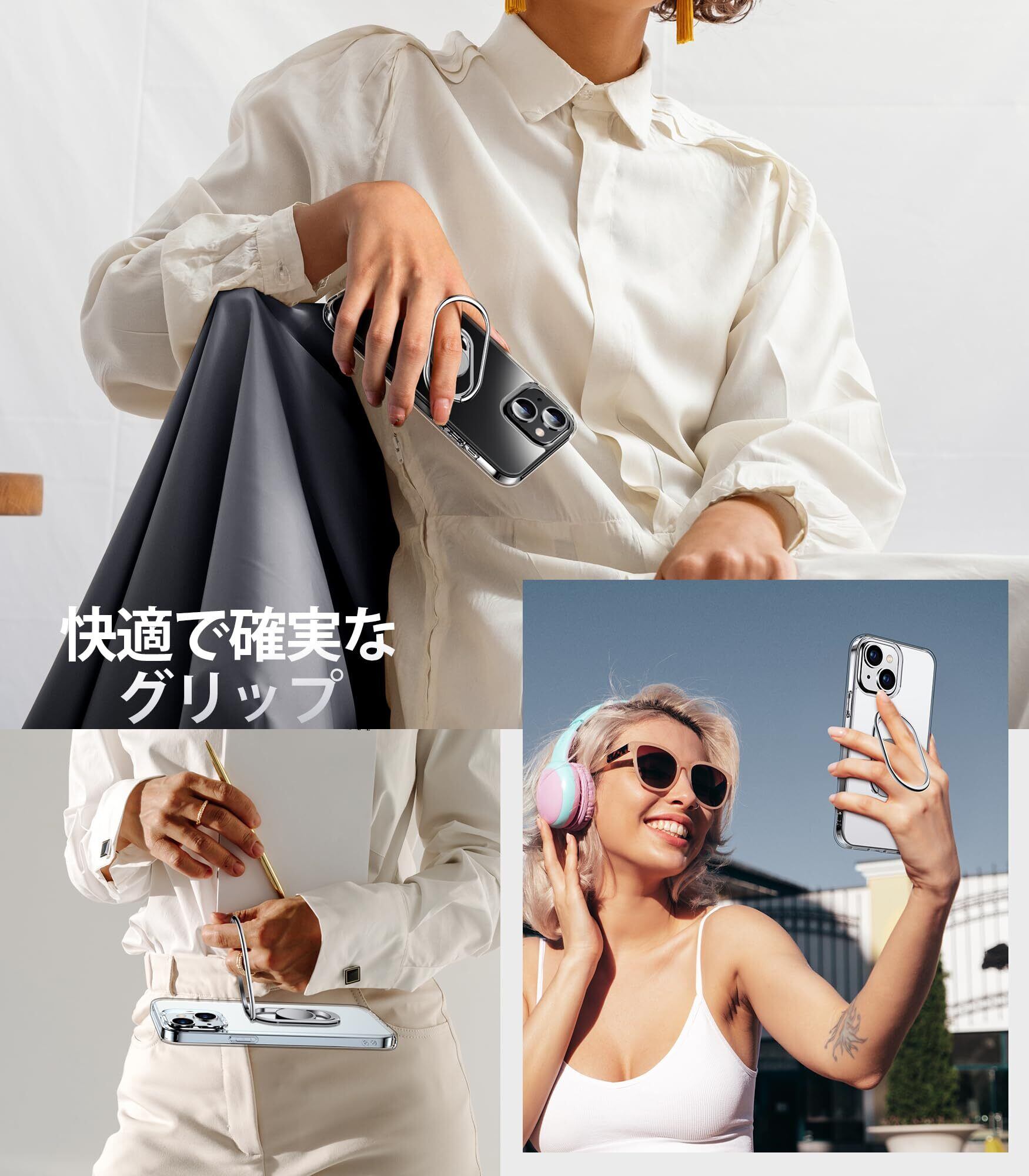 Rockaway iPhone 15 用 ケース スマホリング スマホグリップ 角度調節可能 折り畳み 耐衝撃 スタンド機能 軽量 落下防止 スマホケース アイフォン15 用カバー 6.1インチ - クリア