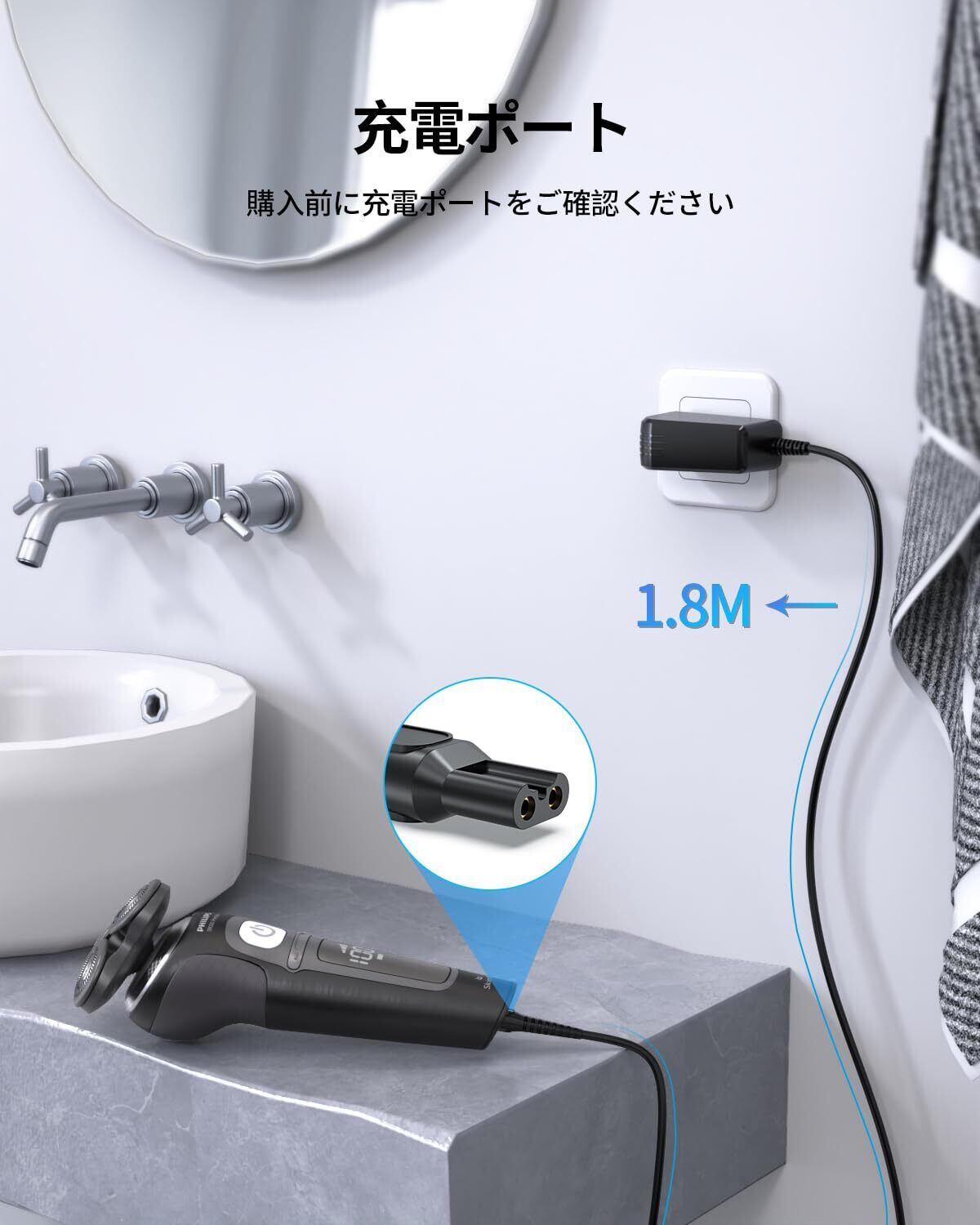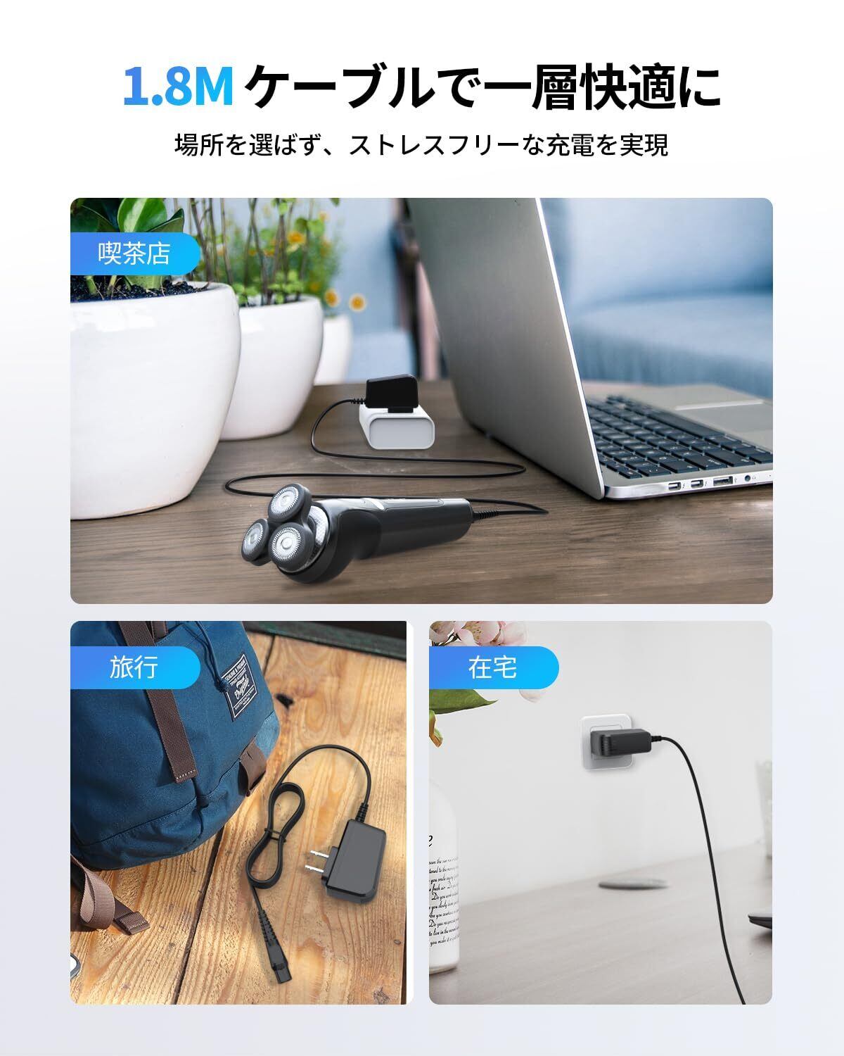 15V 対応 フィリップス シェーバー 充電器 Philips用 HQ8505 9000 7000 6000 5000 3000 1000シリーズ 髭剃り ヒゲトリマー ACアダプター 1.8mコード 電源ケーブル 高耐久 充電コード PSE認証