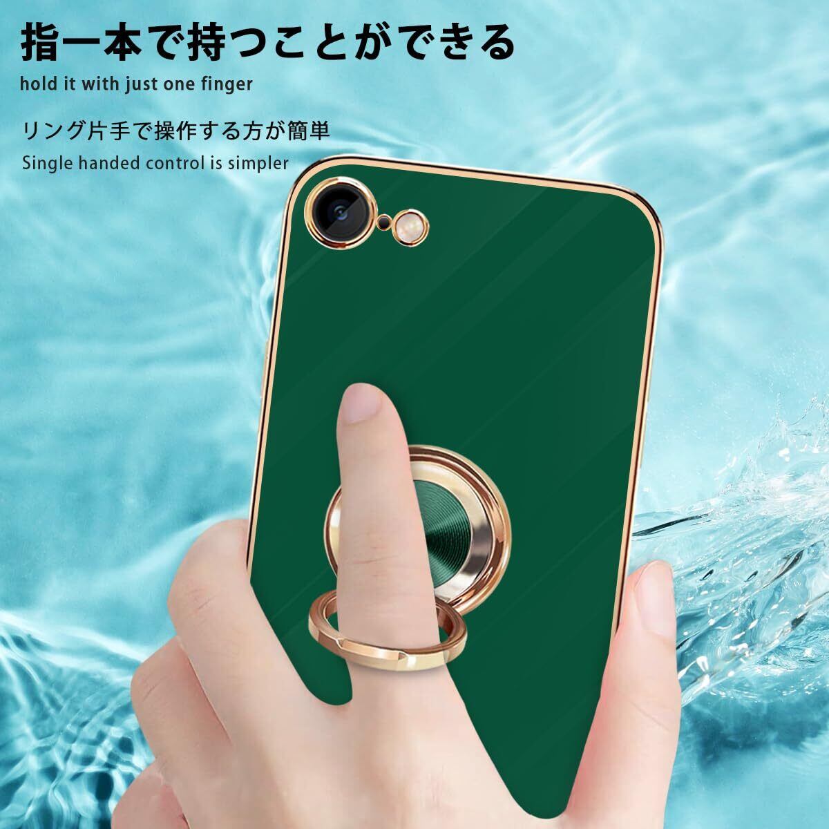 iPhone SE ケース iPhone第3世代 ケース iPhone第2世代 ケース iPhone8/7 ケース リング 耐衝撃 360°回転 スタンド機能 車載ホルダー対応 アイフォン SE3/SE2 ケース 一体型 携帯ケース 保護カバー レンズ保護 ストラップホール付き 4.7インチ (グリーン)