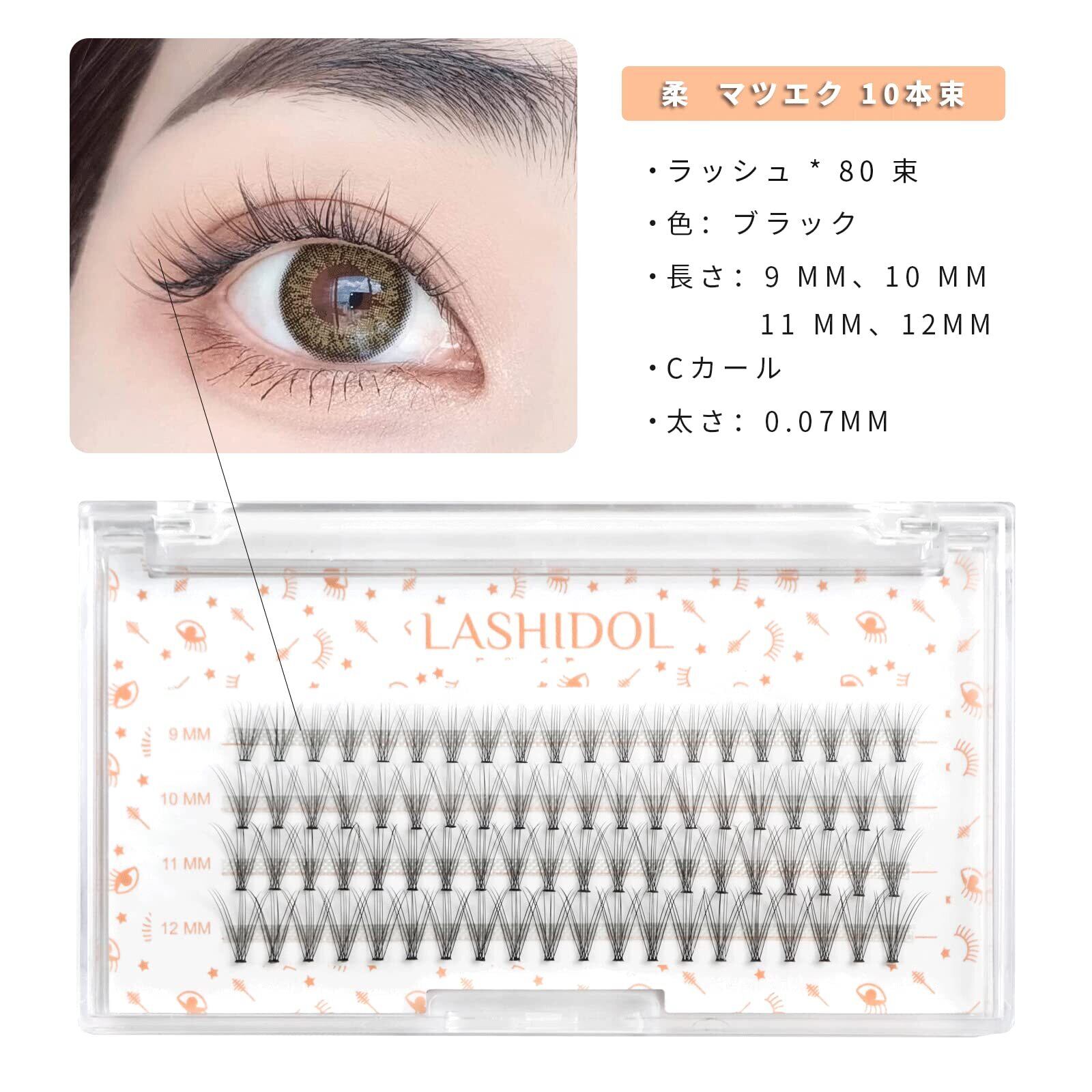 LASHIDOL マツエク セルフ 部分用つけまつげ ナチュラル クラスターまつげ つけまつ毛 簡単 人気 9~12mm (柔 マツエク 10本束Cカール)
