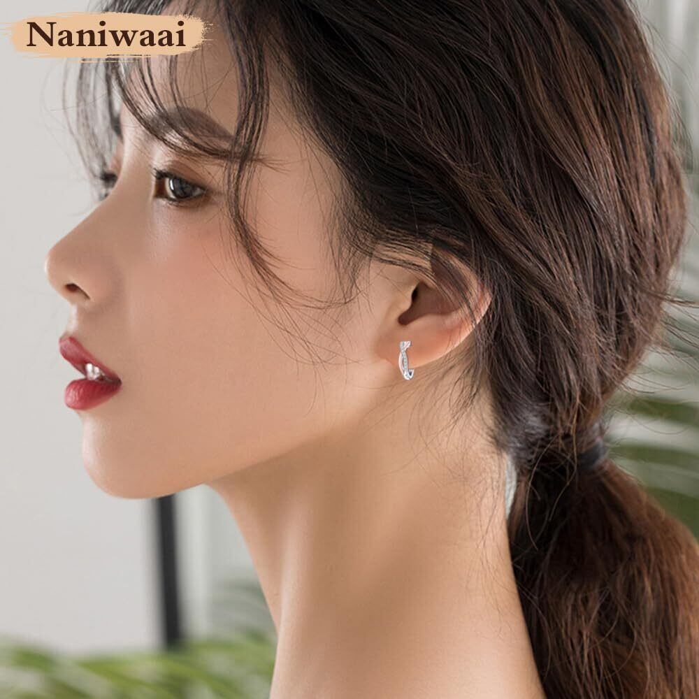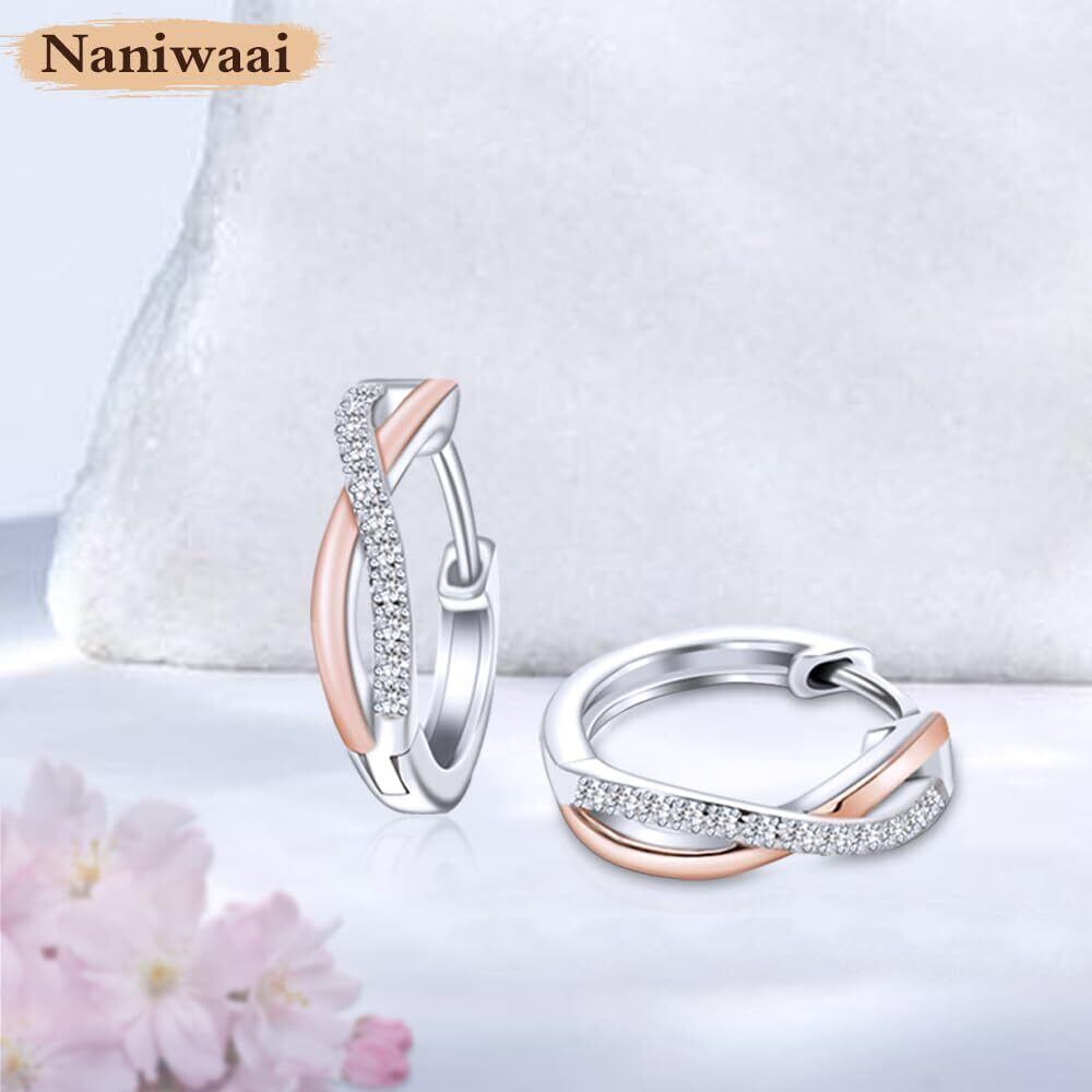 Naniwaai ピアス レディース 人気 最高級ジルコニア ピアス 金属アレルギー対応 ツイスト フープピアス リング シルバー925 ピアス 18金 ブラチラメッキ シンプル おしゃれ ピアス アクセサリー プレゼント お誕生日 ホワイトデー 母の日 クリスマス
