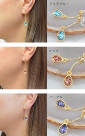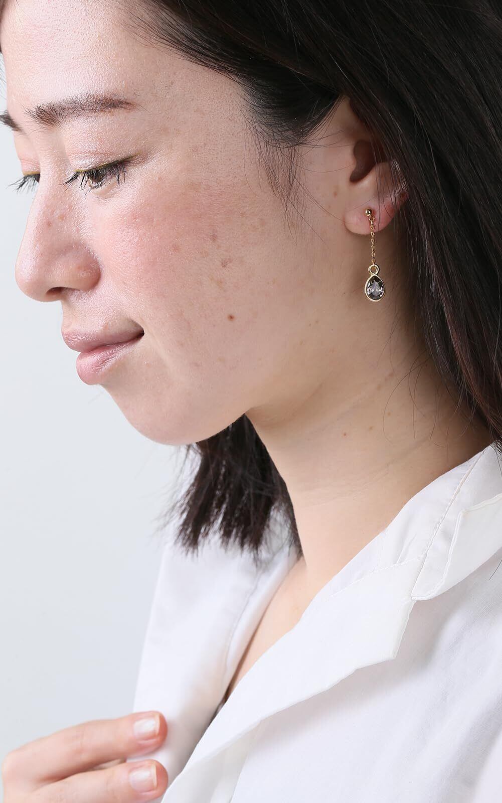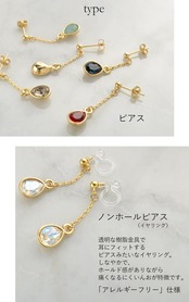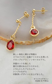 【仕様】カラー:クリア、グレージュ、モンタナ、パシフィックオパール、レッド、ホワイトオパール、パープル、イエロー、ピンク、シトラスグリーン、アクアブルー、ブラック/サイズ:約30mm、重さ(1ペア):ピアス、ノンホールピアスともに約2.3g/素材:スワロフスキークリスタル、金具は真鍮にゴールドめっき、ノンホールピアスパーツはポリカーボネイト