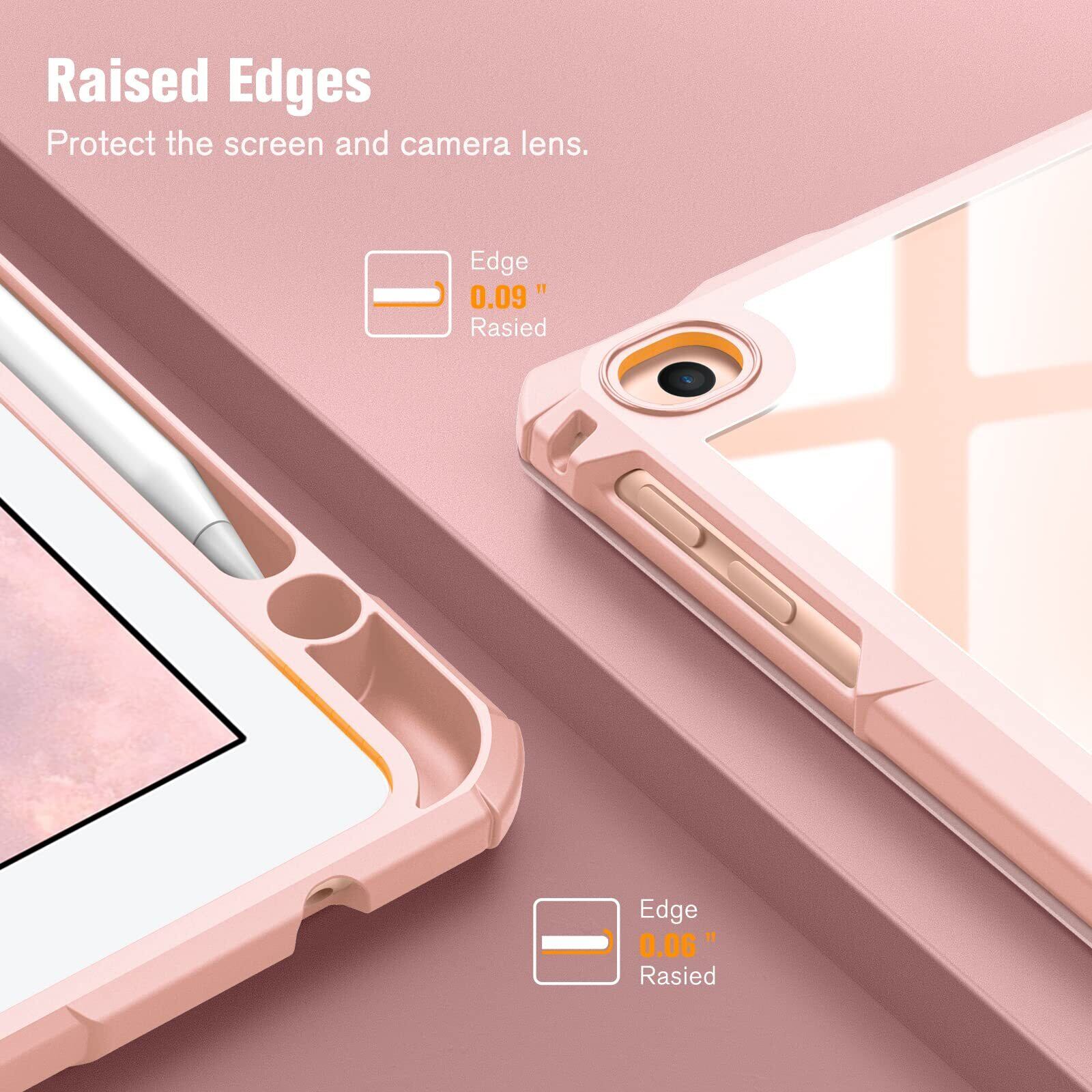 Fintie iPad 9.7 2018 2017 / Air 2 / 1 ケース 透明バックカバー Apple Pencil 収納可能 三つ折スタンド スリープ機能 軽量 薄型 傷つけ防止 PU合成レザー TPU 第6 / 5世代対応 (ローズゴールド)